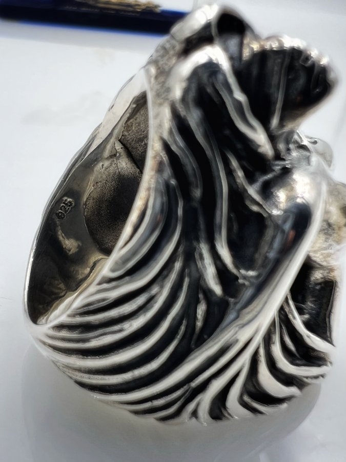 Nhẫn cô gái bạc 925 hiệu Froid Tiedeur phôm bự hoa văn sắc nét rất đẹp, size 19.5mm - ngang 36mm, nặng 28gram (7.47 chỉ), giao thông 3tr8❤️ Thiên 0923.12.6789