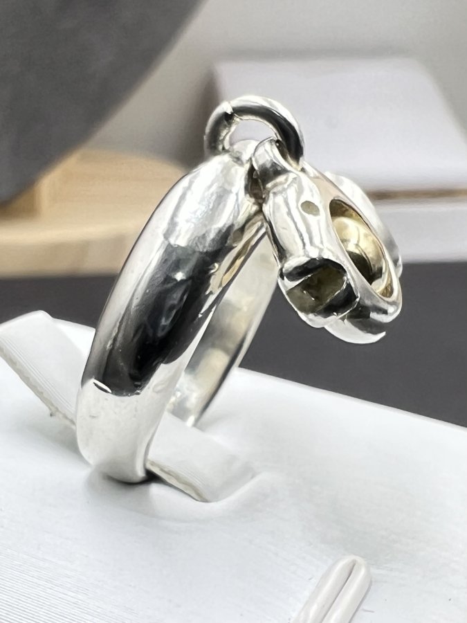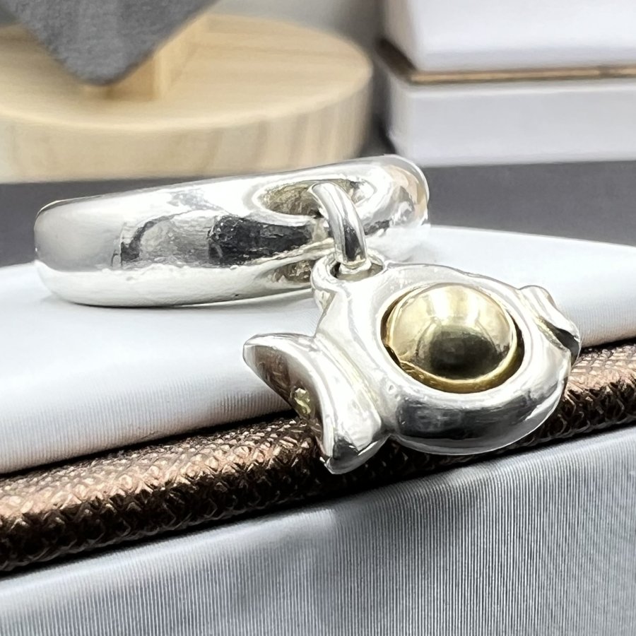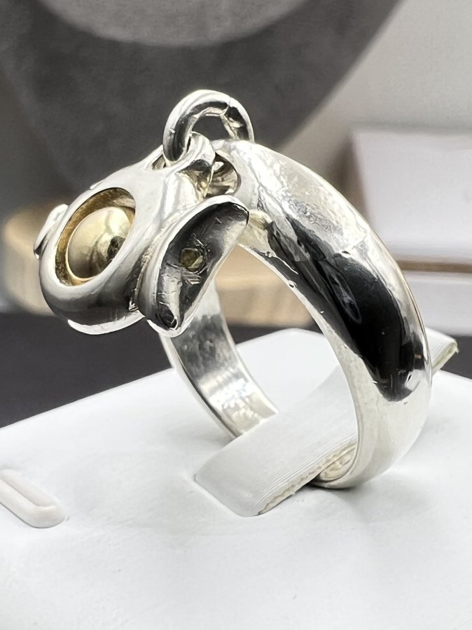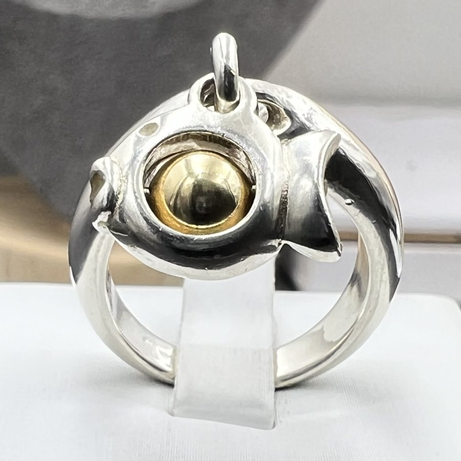 Nhẫn con cá bạc 925 phối bi vàng hiệu Clioblue hoa văn sắc nét rất đẹp, viên bi vàng xoay tròn được, size 17mm, nặng 9.8gram (2.62 chỉ), giao thông 2tr399❤️ Thiên 0923.12.6789