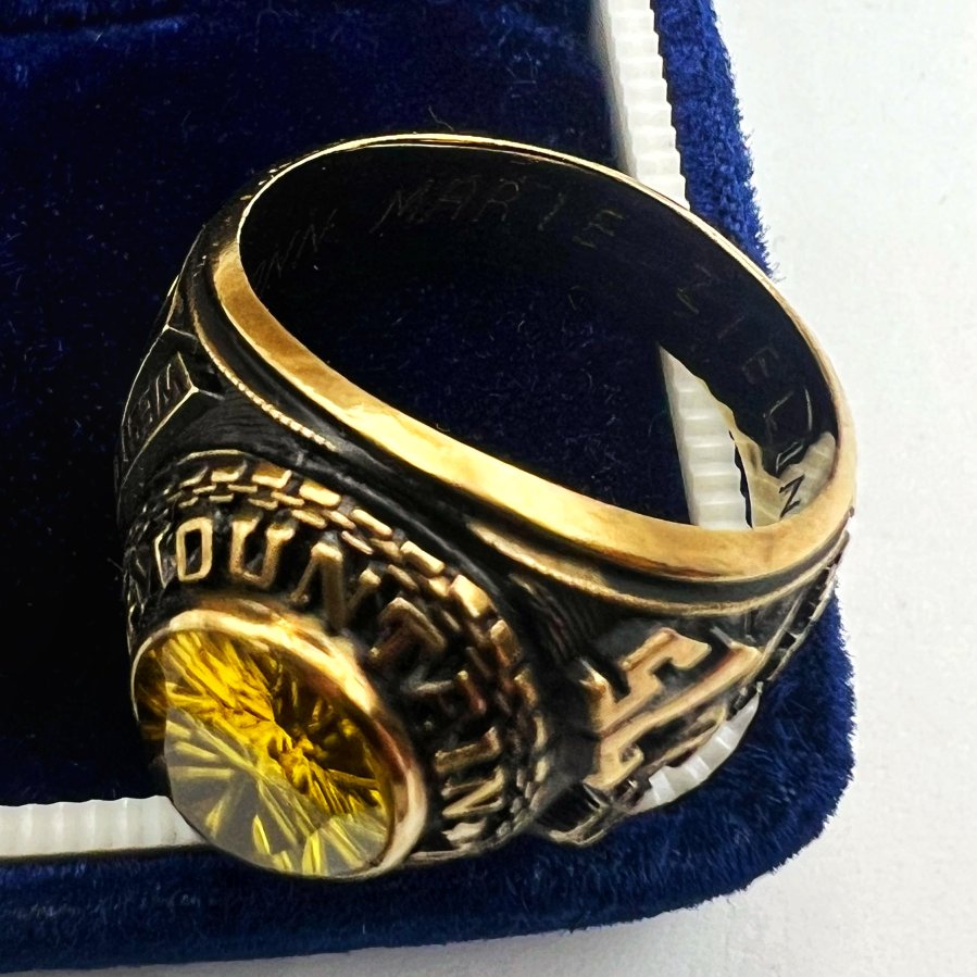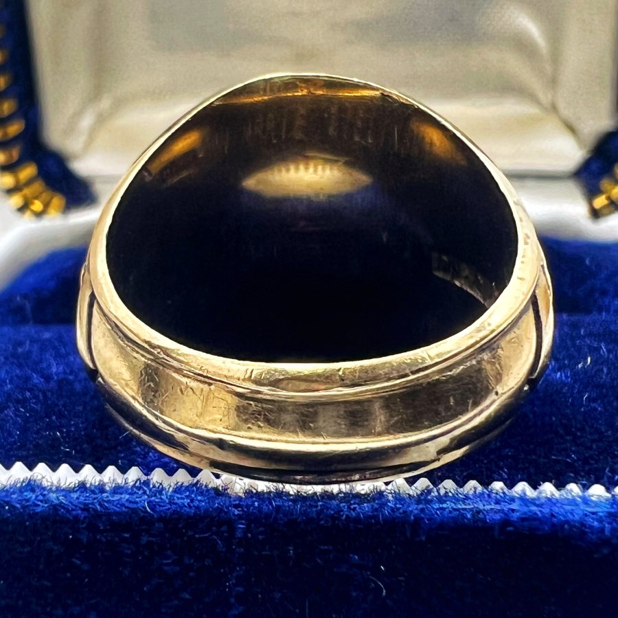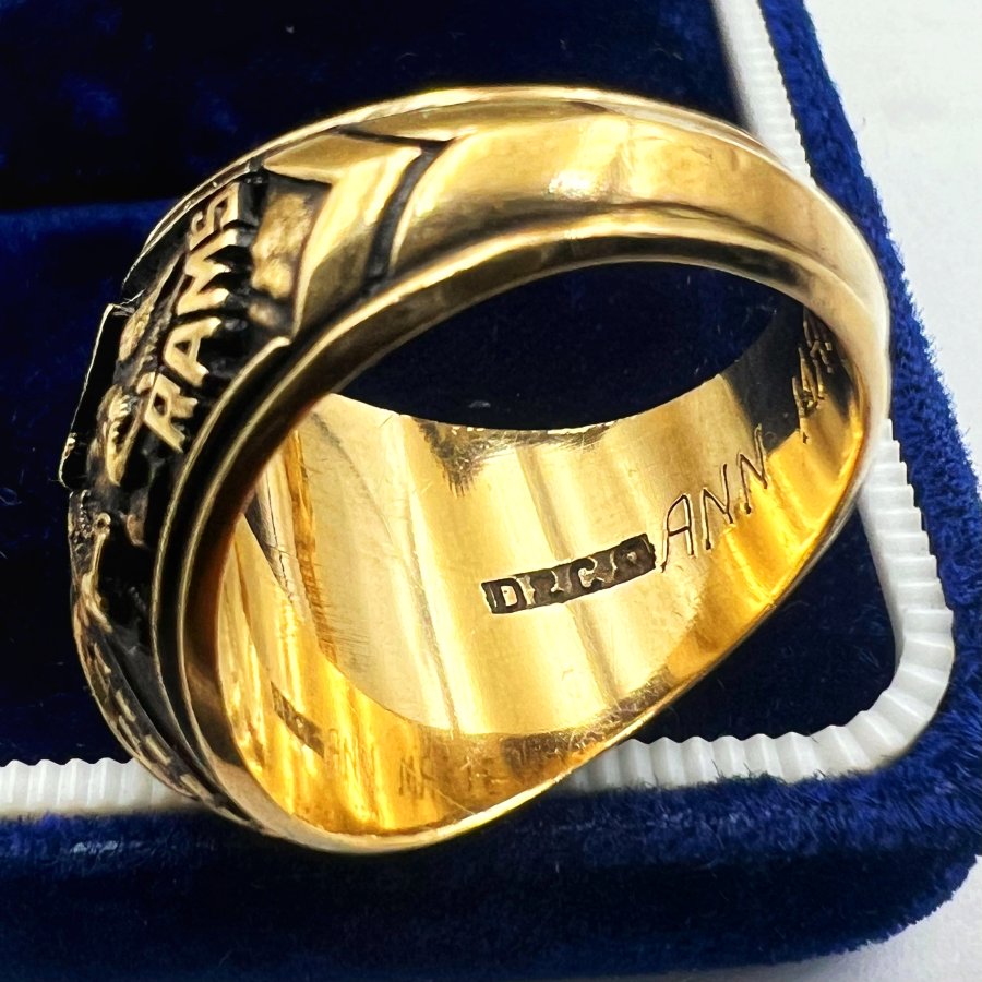Nhẫn con dê bá cấm vàng 7k năm 1975 mới tinh hoa văn sắc nét đá vàng tia đa giác rất đẹp, size 18mm - bản ngang 17.5mm, nặng 9.75gram (2.6 chỉ), giao thông 14tr5❤️ Thiên 0923.12.6789