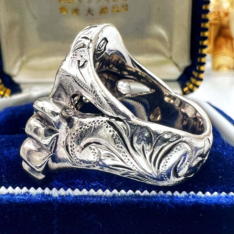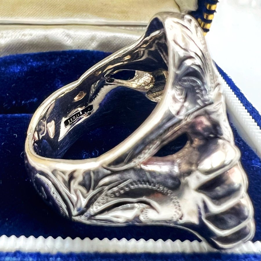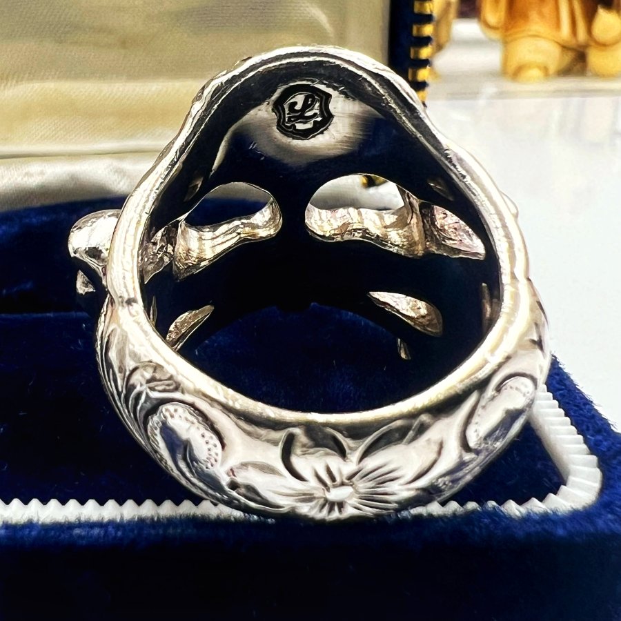 Nhẫn đầu lâu bạc 925 hiệu Lion Heart phôm bự hoa văn khắc thủ công sắc nét rất đẹp, còn đủ hộp và túi nhung, size 18.5mm - bản ngang 23mm, nặng 22.4gram (5.97 chỉ), giao thông 5tr4❤️ Thiên 0923.12.6789