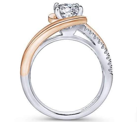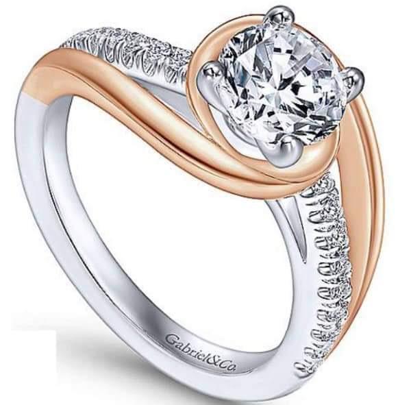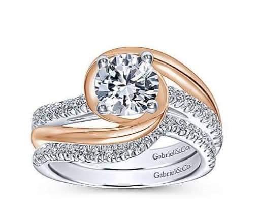 Nhẫn hiệu Gabriel&Co vàng 14k đemi 2 màu (trắng hồng) hoa văn sắc nét đính 18 viên soàn Thiên Nhiên nước F, Viên chủ 6.06-6.1li nước trắng G mắt thường không thấy bệnh rất đẹp, size 17mm, Nặng 5.32gram (1.42 chỉ), khách mua mới GlÁ 164,8 triệu ~ 6,390 ***