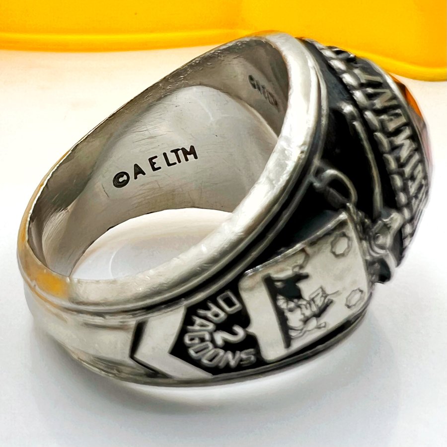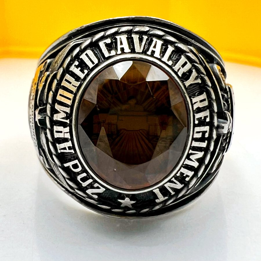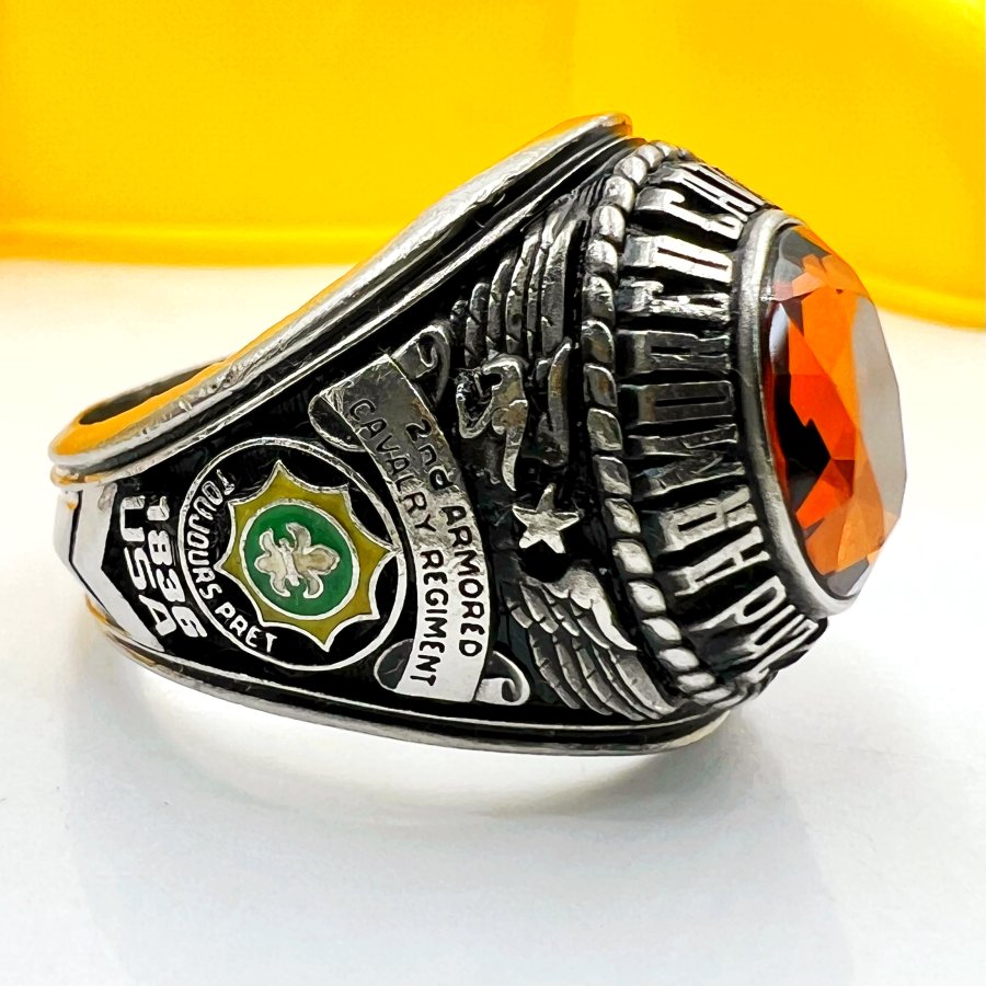 Nhẫn hợp kim 2nd Armored Cavalry Regiment - Dragoons 2 phôm bự hoa văn sắc nét đá vàng đa giác có logo rất đẹp, size 19.5mm - bản ngang 21mm Thiên 0923.12.6789