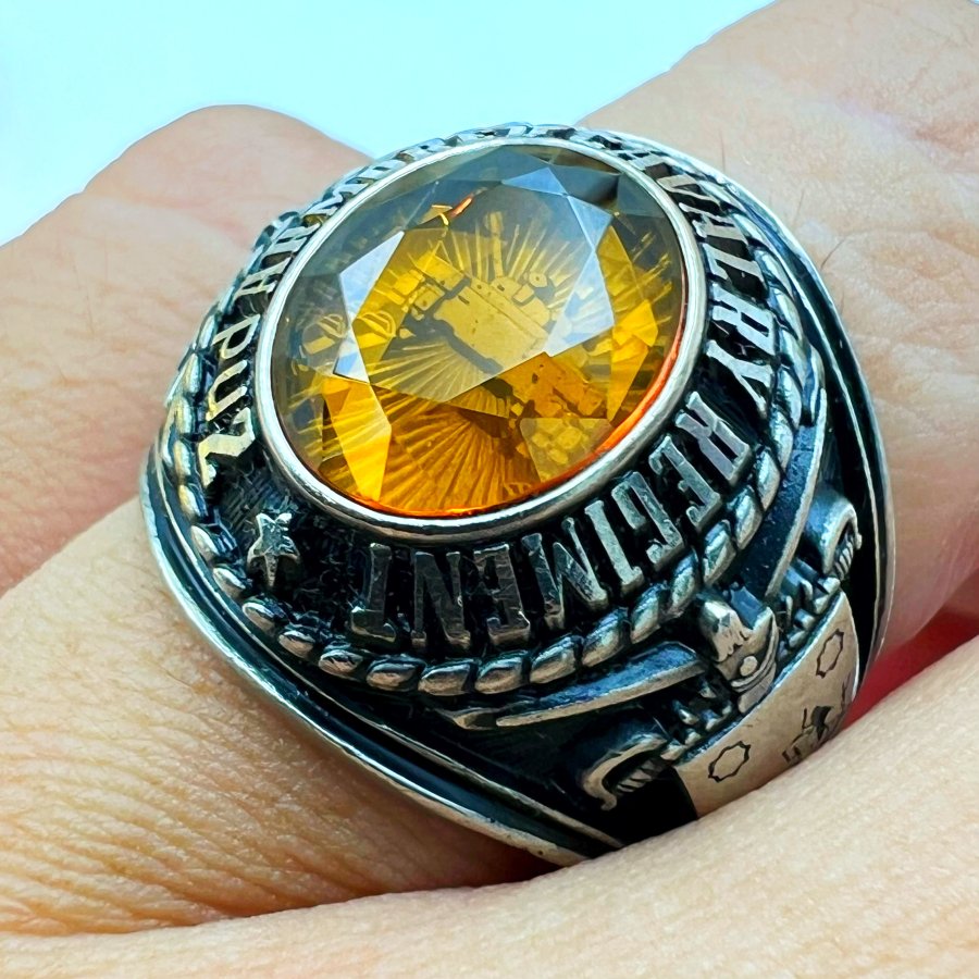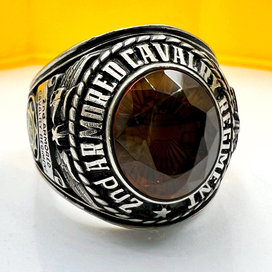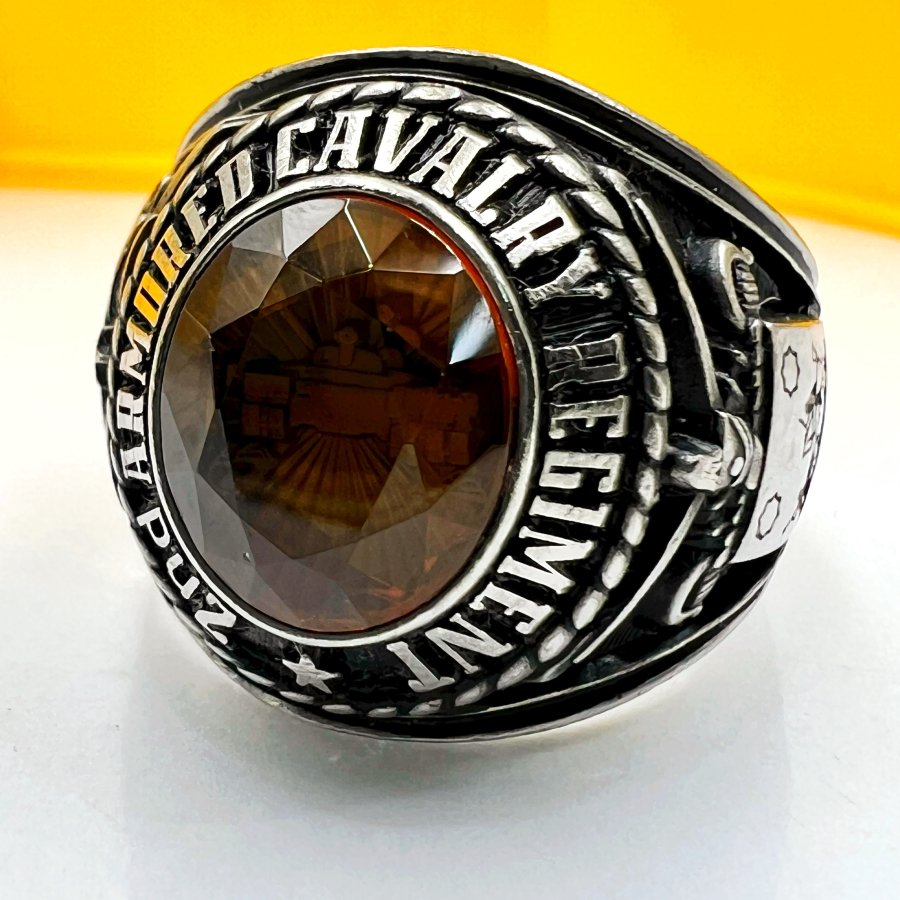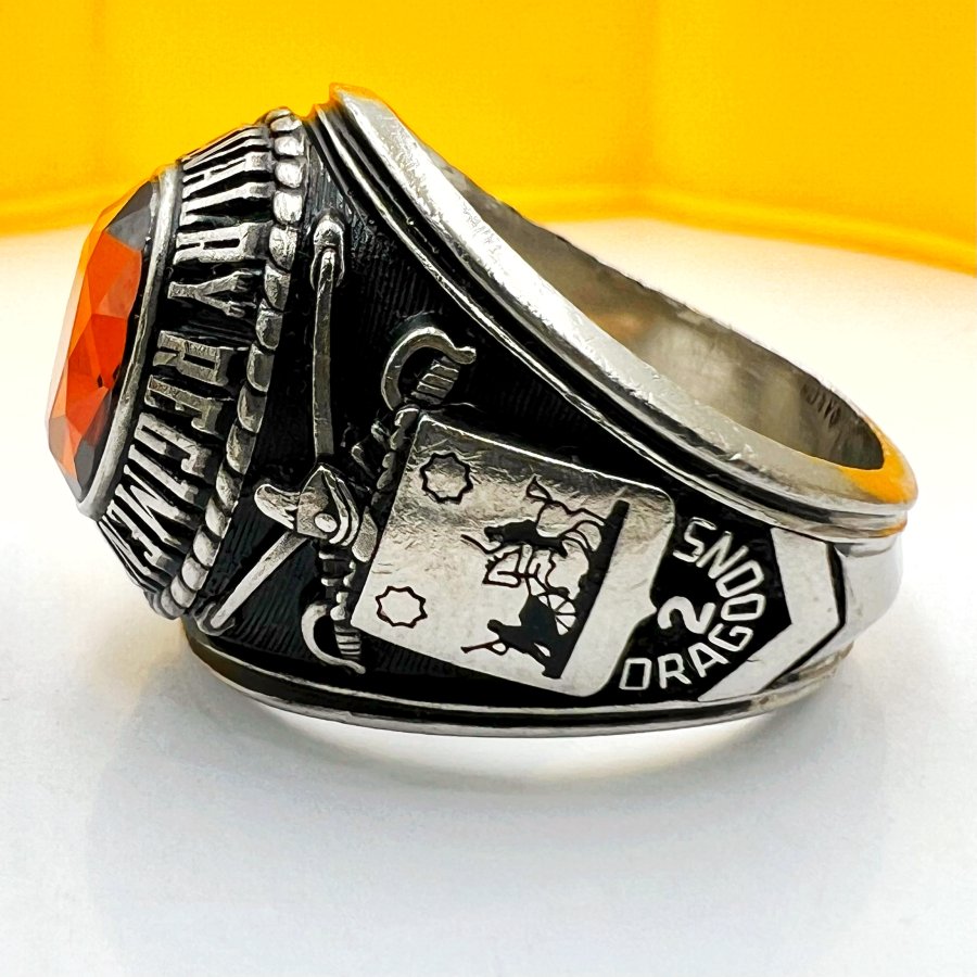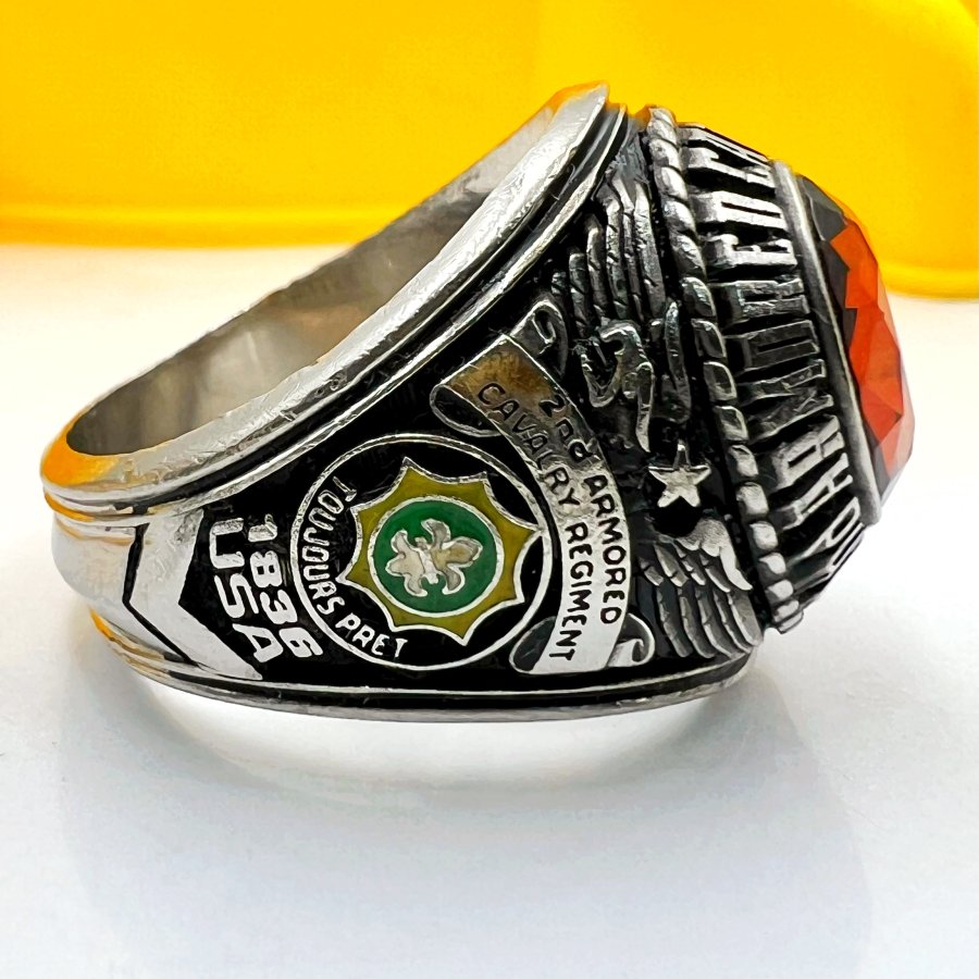 Nhẫn hợp kim 2nd Armored Cavalry Regiment - Dragoons 2 phôm bự hoa văn sắc nét đá vàng đa giác có logo rất đẹp, size 19.5mm - bản ngang 21mm Thiên 0923.12.6789
