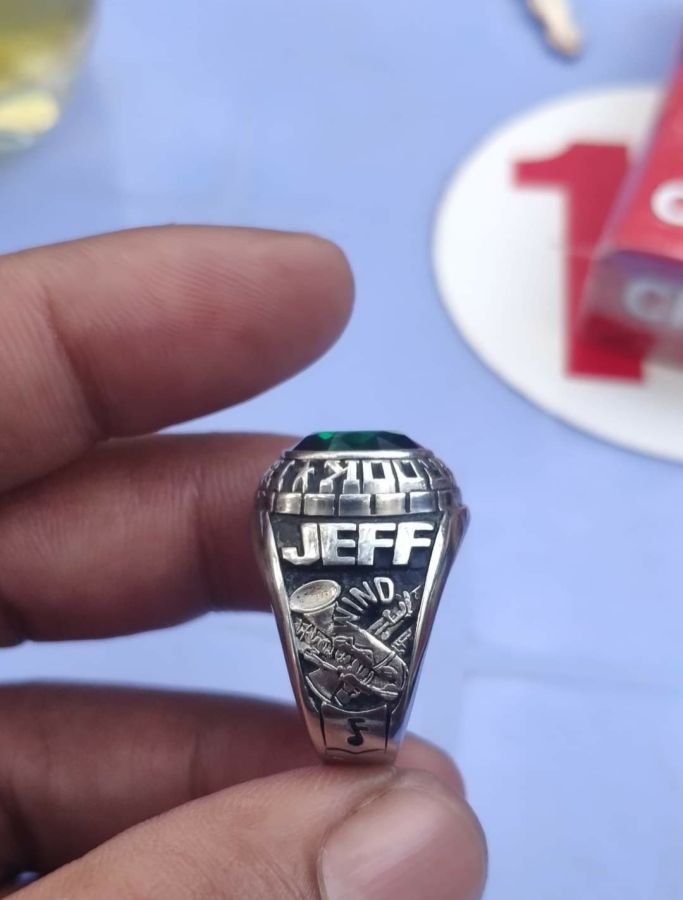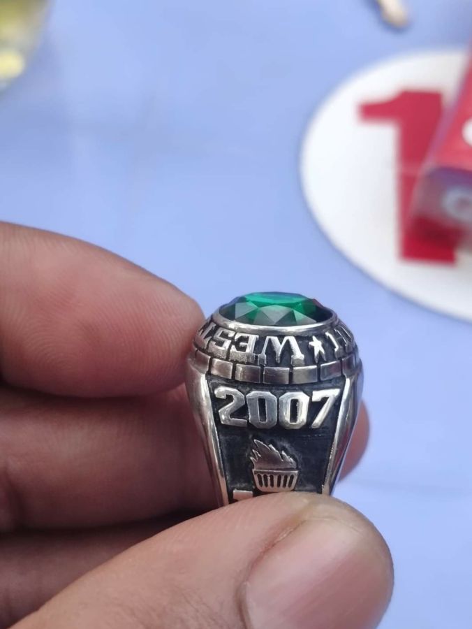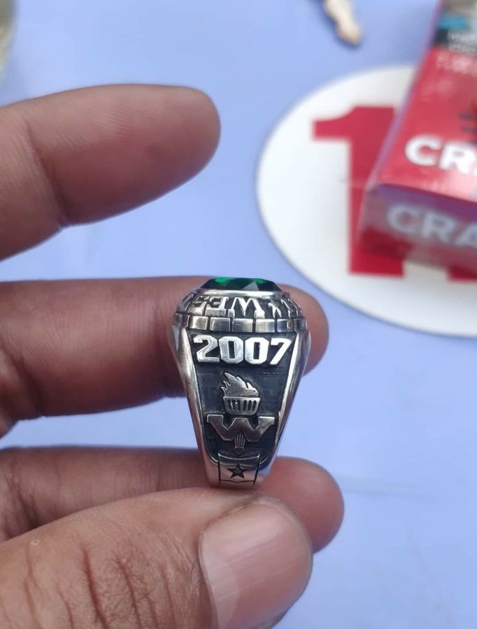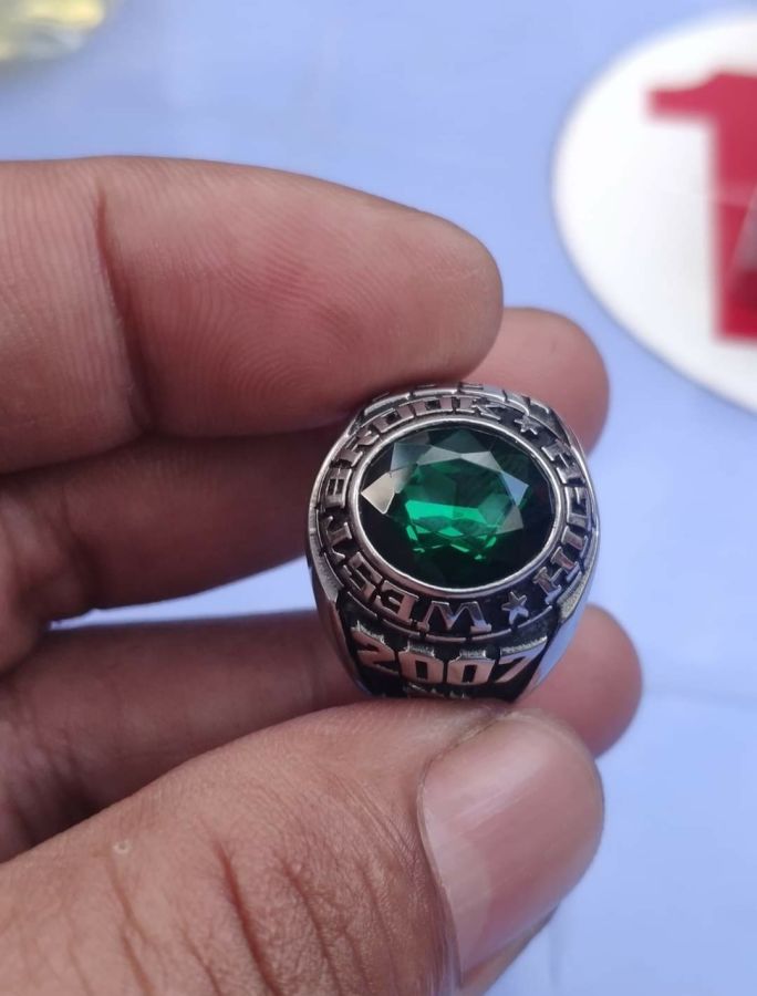 nhẩn mỹ trường trung học âm nhạc, chất liệu hợp kim chuẩn hảng jostens sản xuất. hột xanh lục bảo vát cạnh bắt sáng tuyệt đẹp. size: 18,5. lên tay bao đẹp