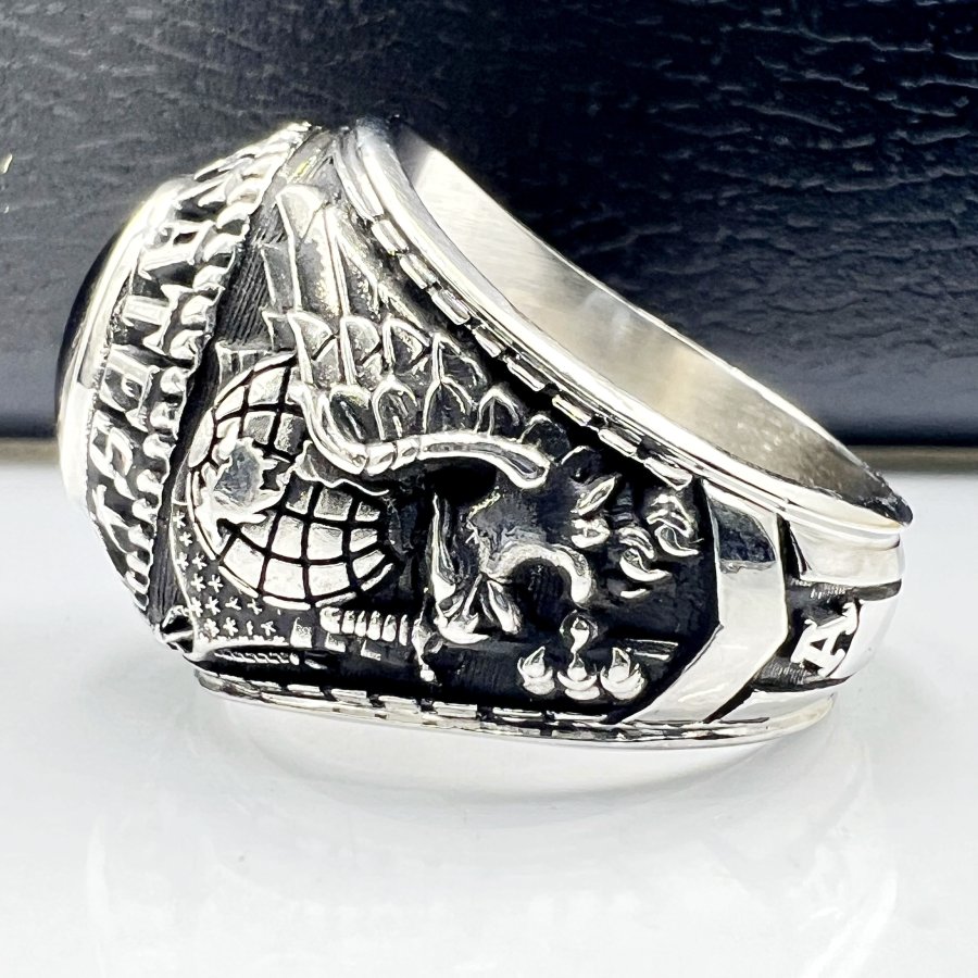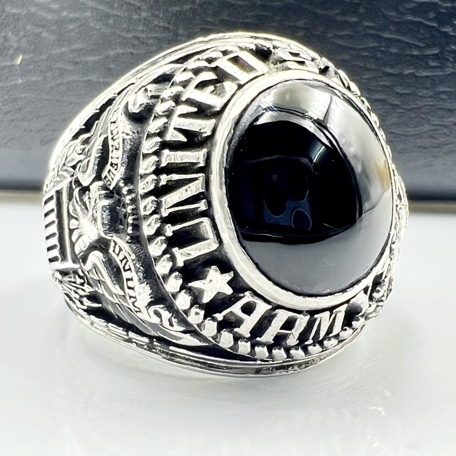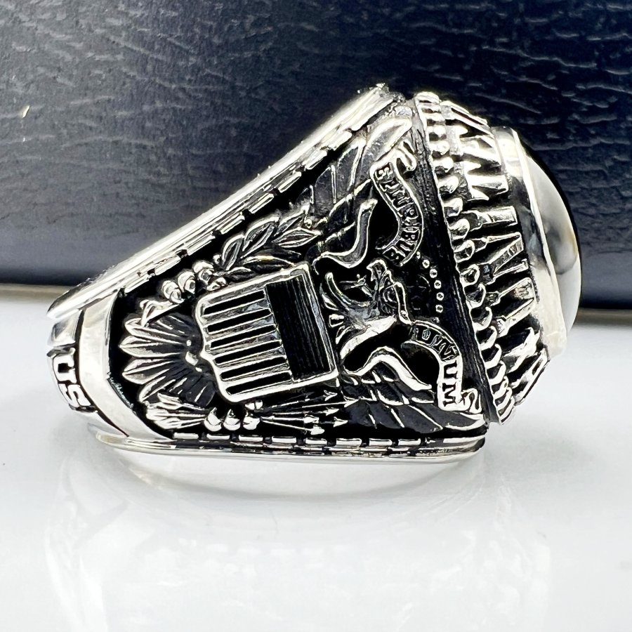 Nhẫn hợp kim U.S Army mới tinh phôm bự hoa văn sắc nét đá đen mo rất đẹp, size 20mm - bản ngang 22mm, giao thông 7tr5❤️ Thiên 0923.12.6789