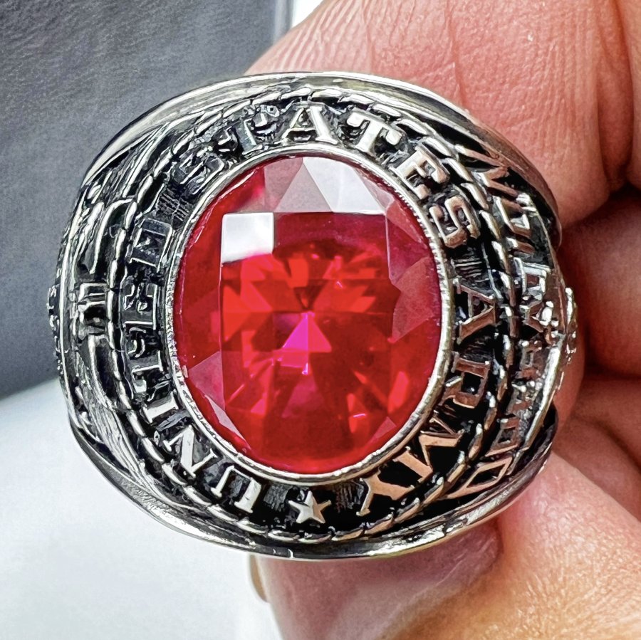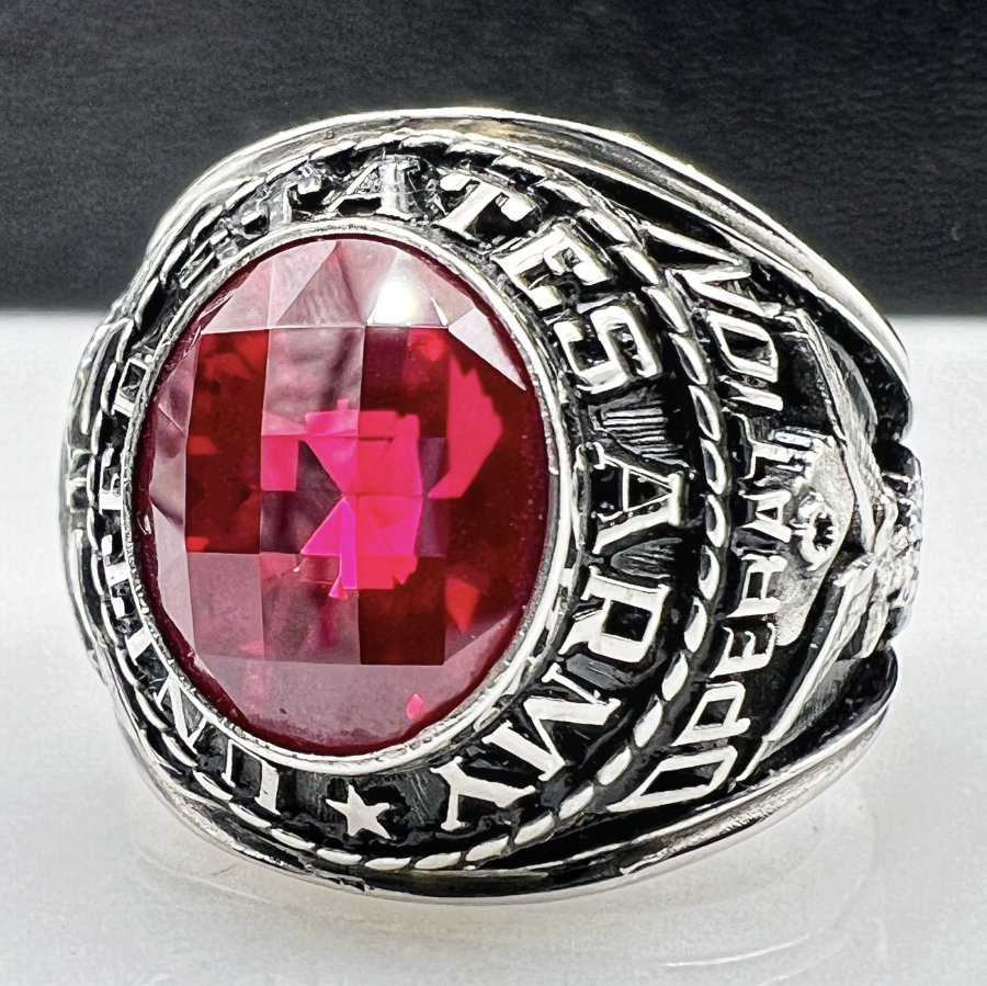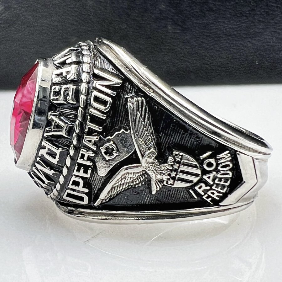 Nhẫn hợp kim U.S Army Signal Corps - Operation 2005 mới tinh phôm bự hoa văn sắc nét đá đỏ đa giác rất đẹp, size 20mm - bản ngang 20.5mm, giao thông 6tr❤️