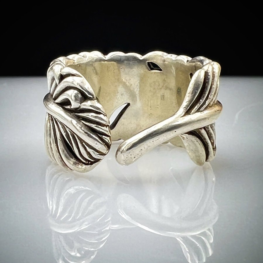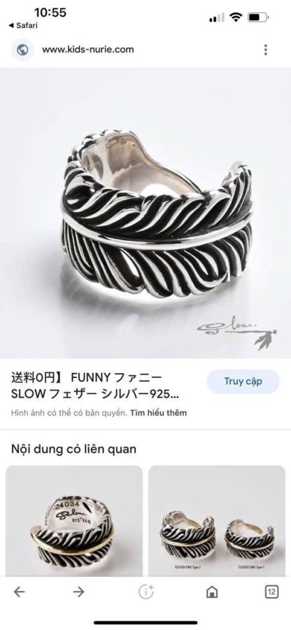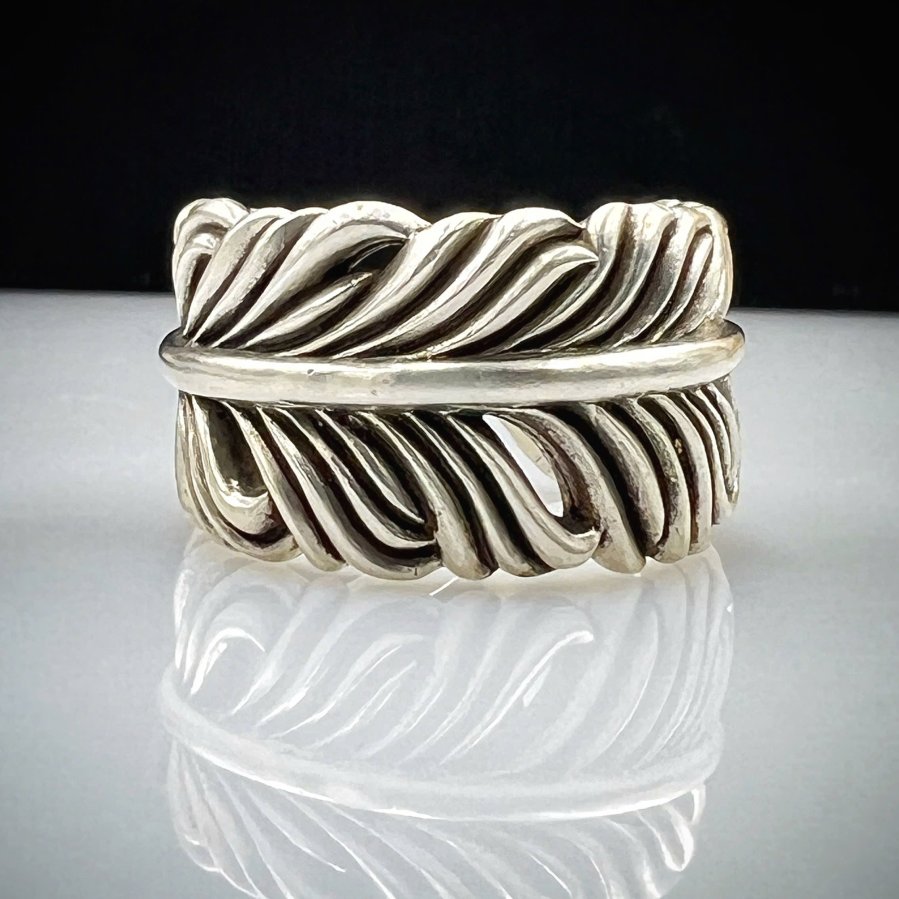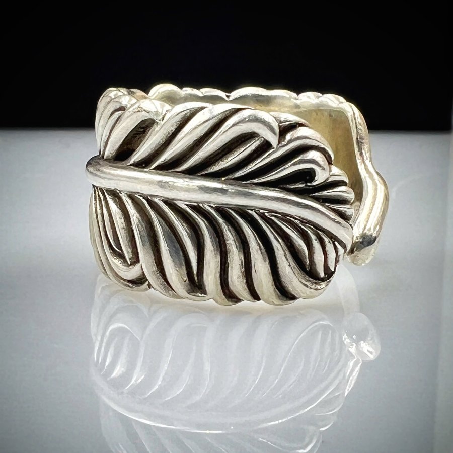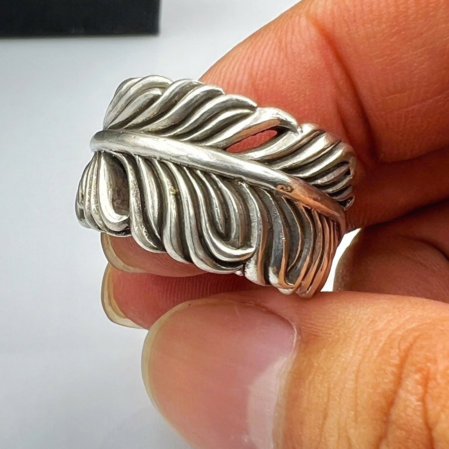 Nhẫn lông vũ bạc 925 hiệu Slow hoa văn sắc nét rất đẹp, phôm bự ôm tay, free size 19mm (tăng giảm đc) - bản ngang 15mm, nặng 18gram (4.8 chỉ)