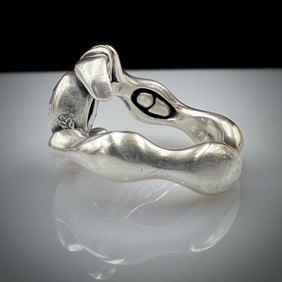 Nhẫn móng vuốt bạc 925 Nhật hàng hiệu hoa văn sắc nét đính soàn Cz 9li tuyệt đẹp, phôm bự, size 19mm - ngang 19mm, nặng 19.2gram