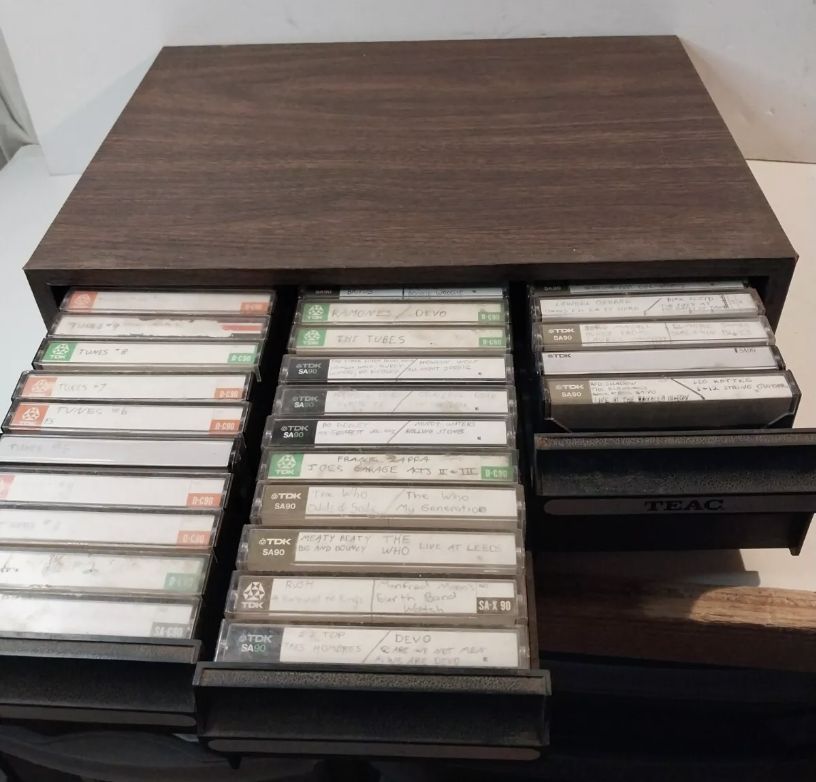 Lot of 34 used cassette tapes Blanks TDK In 3 drawer Teac Cassette holder