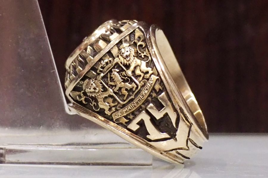 👍Tình trạng nhẫn xuất sắc cực đẹp , hoạ tiết sắc nét từng chi tiết , hình ảnh đẹp rất có ý nghĩa , mặt nhẫn là biểu tượng cành tùng của ************ đính kim cương thiên nhiên lấp lánh , form rất đẹp lên tay mạnh mẻ và sang trọng