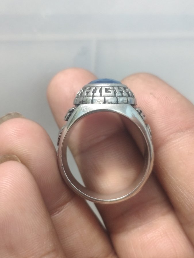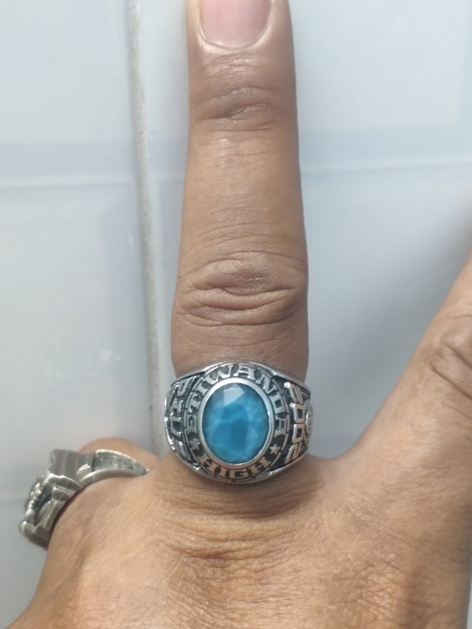 nhẫn mỹ hợp kim chuẩn hảng jostens. phom đẹp cao to. viên đá chủ xanh nhạt vát cạnh đẹp bóng sáng chiếu. mẩu phom lên tay rất đẹp. size lòng trong 20mm.