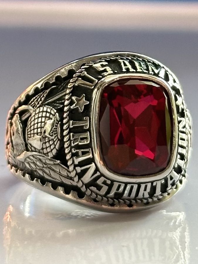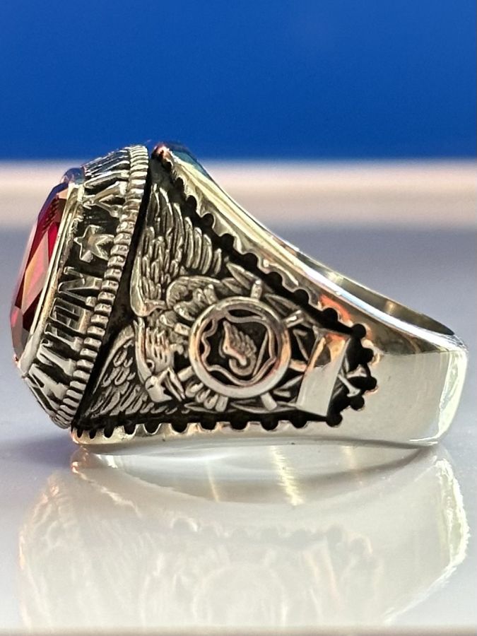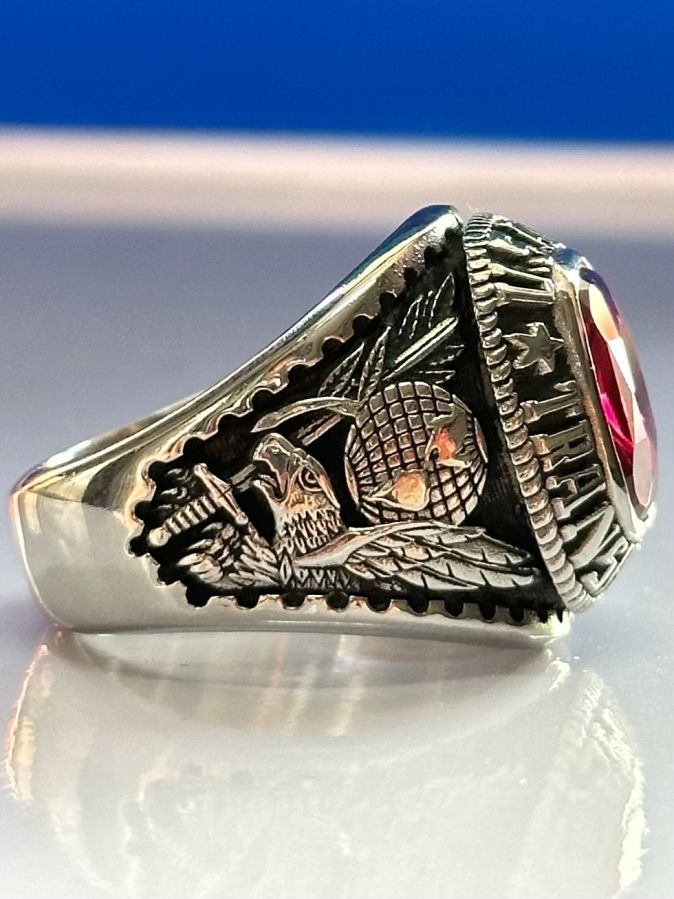 👉 Nhẫn đẹp cực ngầu, hột đỏ đa giác cực chiếu, hoạ tiết chim đại bàng sắc nét, 2 bên rõ nét, đai nhẫn dày, mới rất sáng