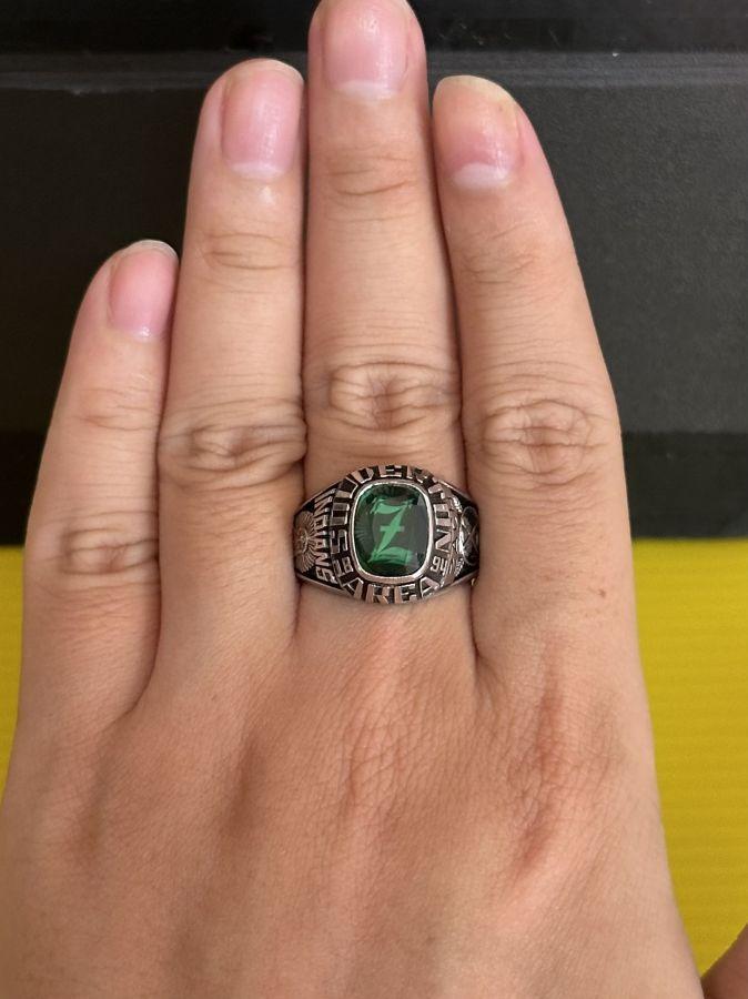👉 Nhẫn đẹp xuất sắc, hột xanh ve chai giác cạnh, bên trong hột có chữ Z, hoạ tiết cực kì sắc nét, tuyệt đẹp.