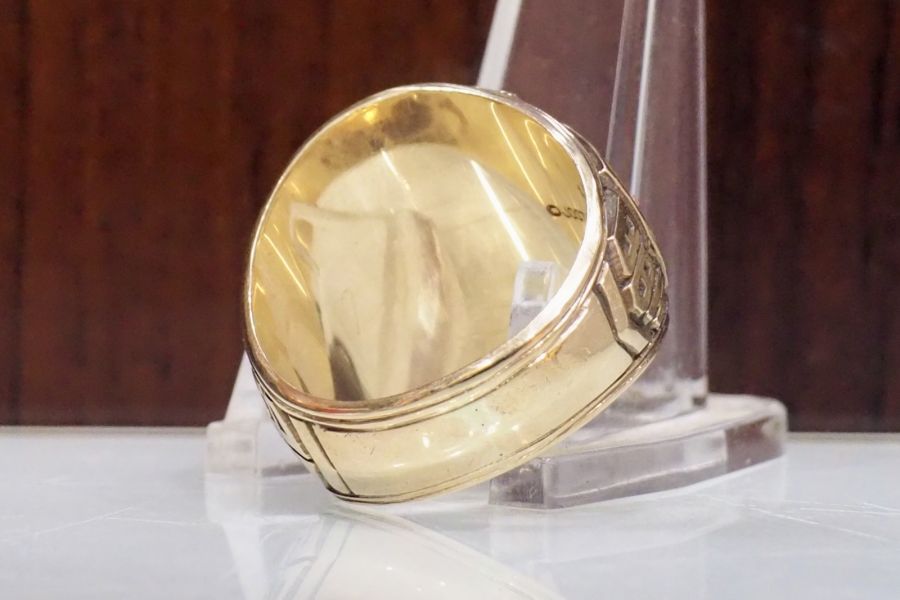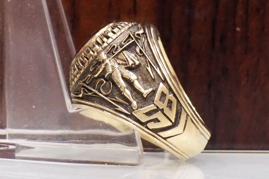 👍Tình trạng nhẫn xưa tuyệt đẹp , viên đá màu đỏ với logo chử dát vàng lấp lánh kg tỳ vết , hoạ tiết 2 thân sắc nét với hình ảnh rất đẹp , form nhẫn tuyệt vời lên tay ôm đẹp mạnh mẻ