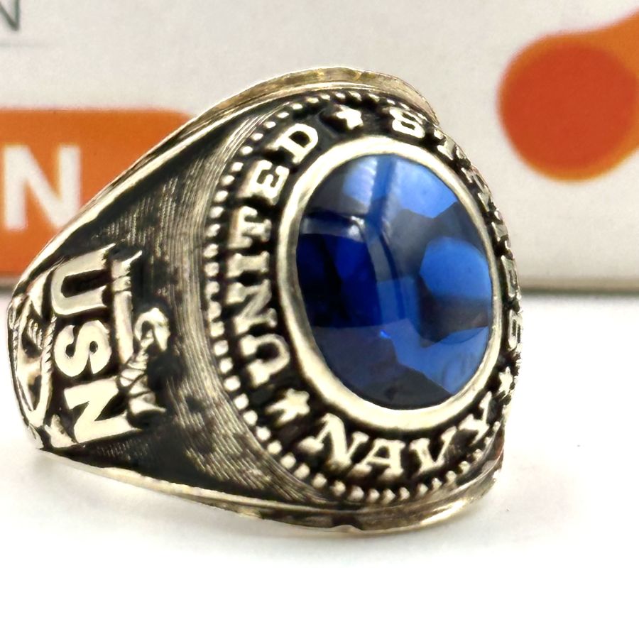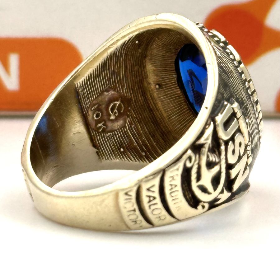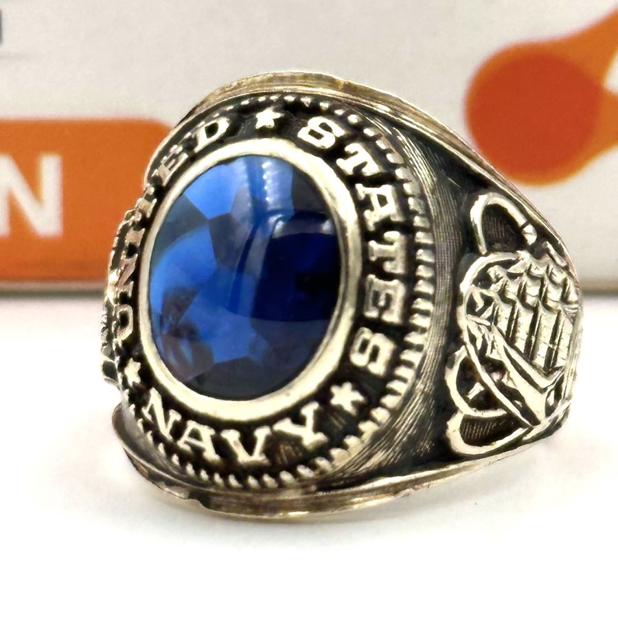 NHÃN MỸ VÀNG 10 K XƯA NAVY ************ HẢI QUÂN Hoa Kỳ NẶNG 9 g 84 ( 2 chi 62) SIZE 19 GIÁ 13