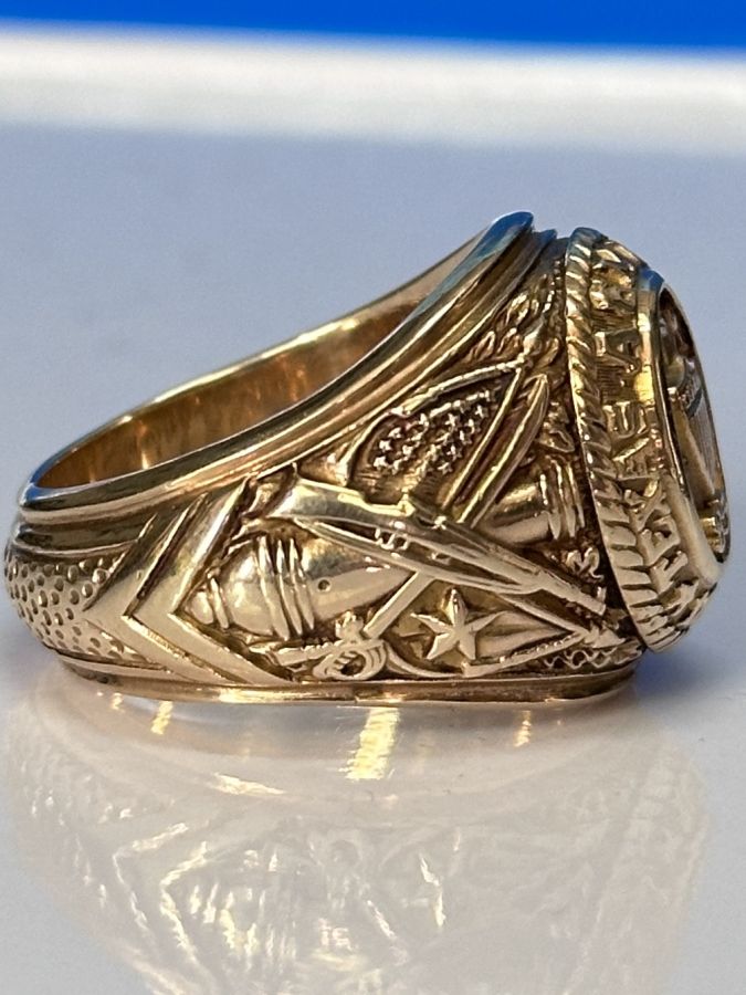 Nhẫn Mỹ Xưa Vàng 10K trường Q.uân S.ự Texas khoá 85