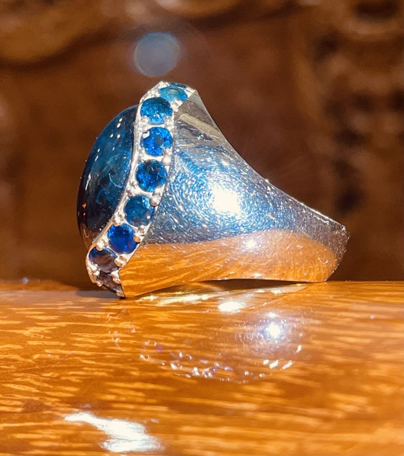 Viên Chủ Sapphire sao tự nhiên nặng 20ct với tone màu blue tuyệt đẹp , vỏ nhẫn vàng 14k , đính saphia xanh hero thiên nhiên .