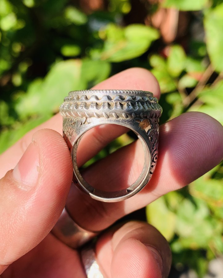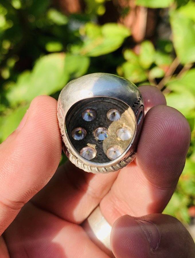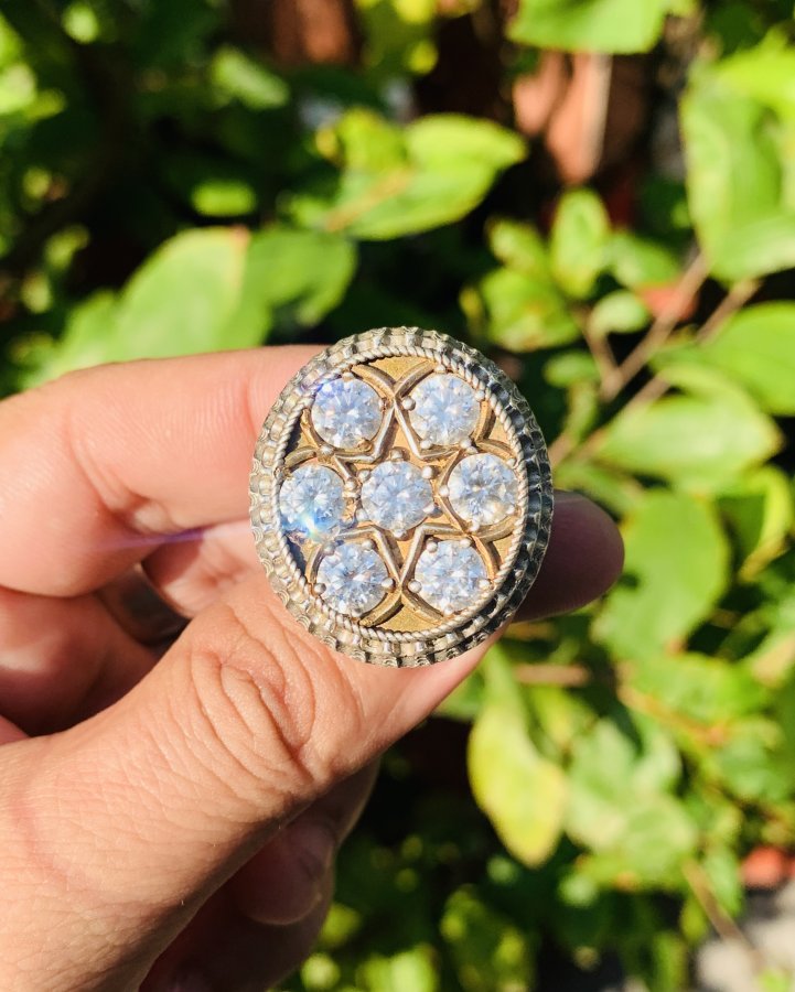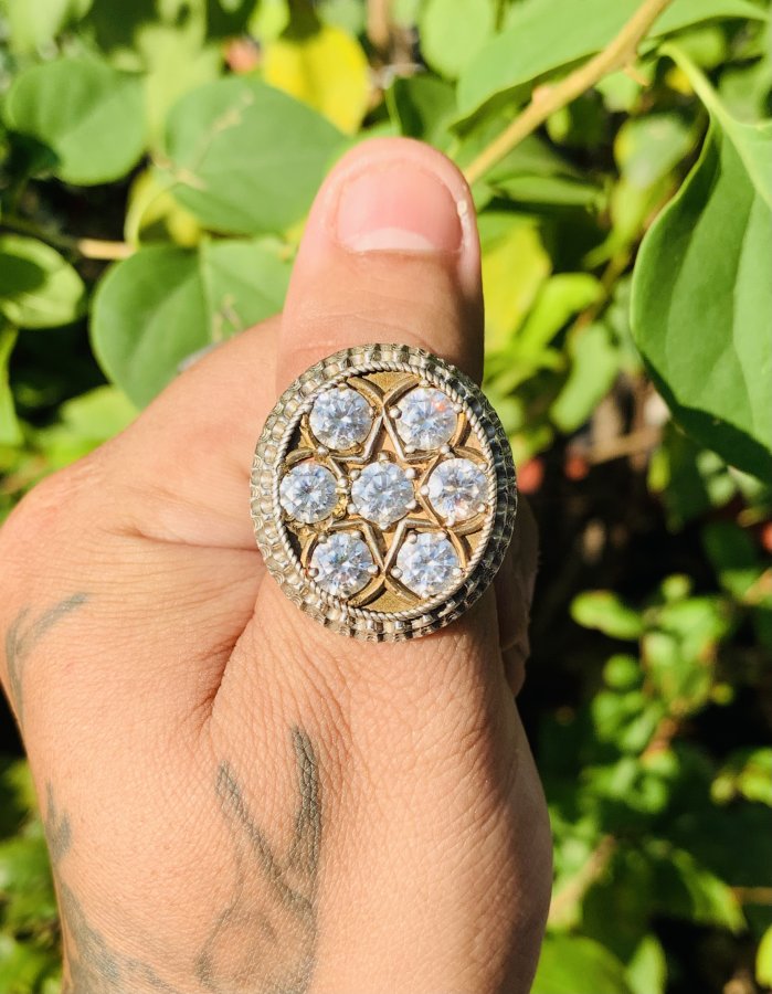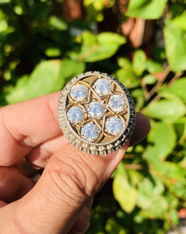 Nhẫn bạc ngoại làm theo mẫu thất tinh hội tụ. 7 viên kim moissanite to 7ly. Mỗi viên cũng hơn 3 trịu. Size 20 phom to.