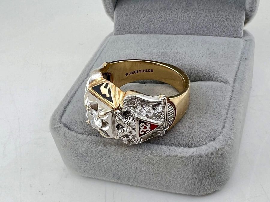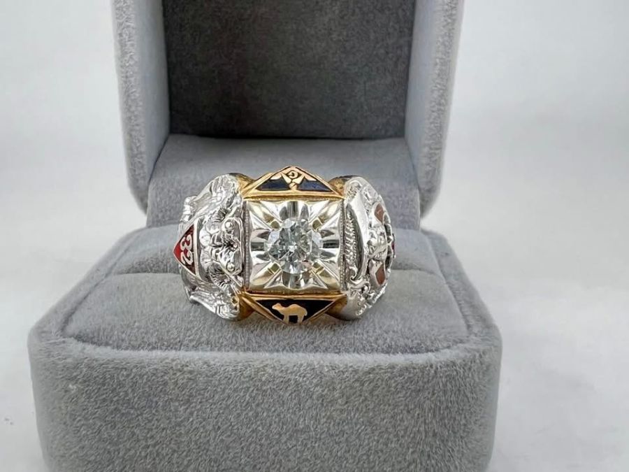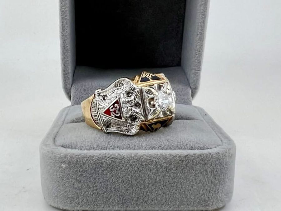 Nhẫn masonicĐính viên kim cương thiên nhiên 5ly1Size 19,5/20mmVàng 10k 3c29