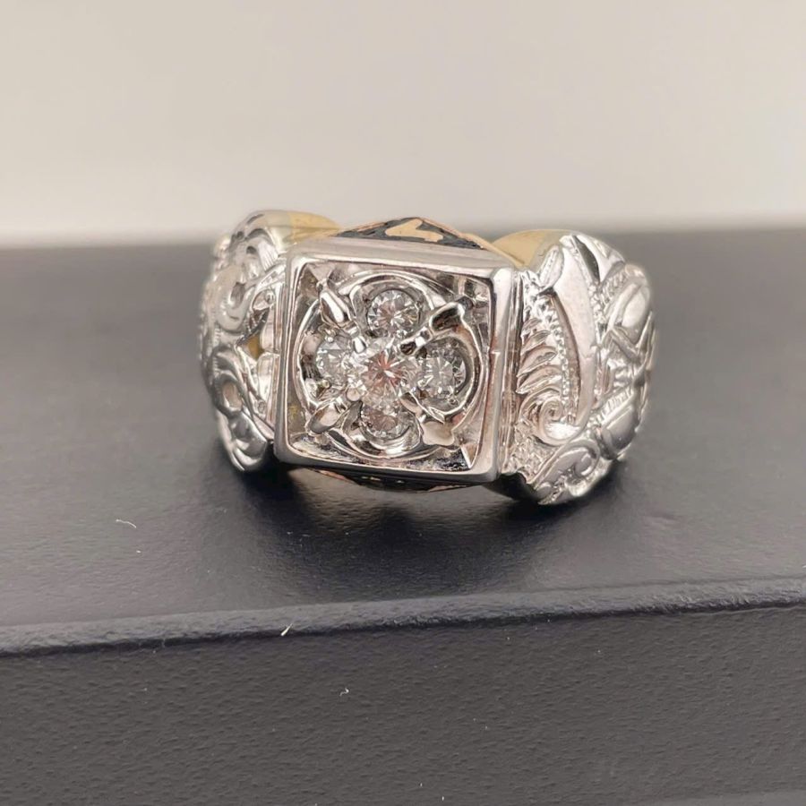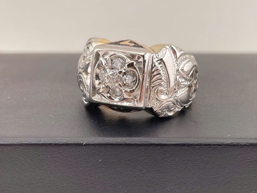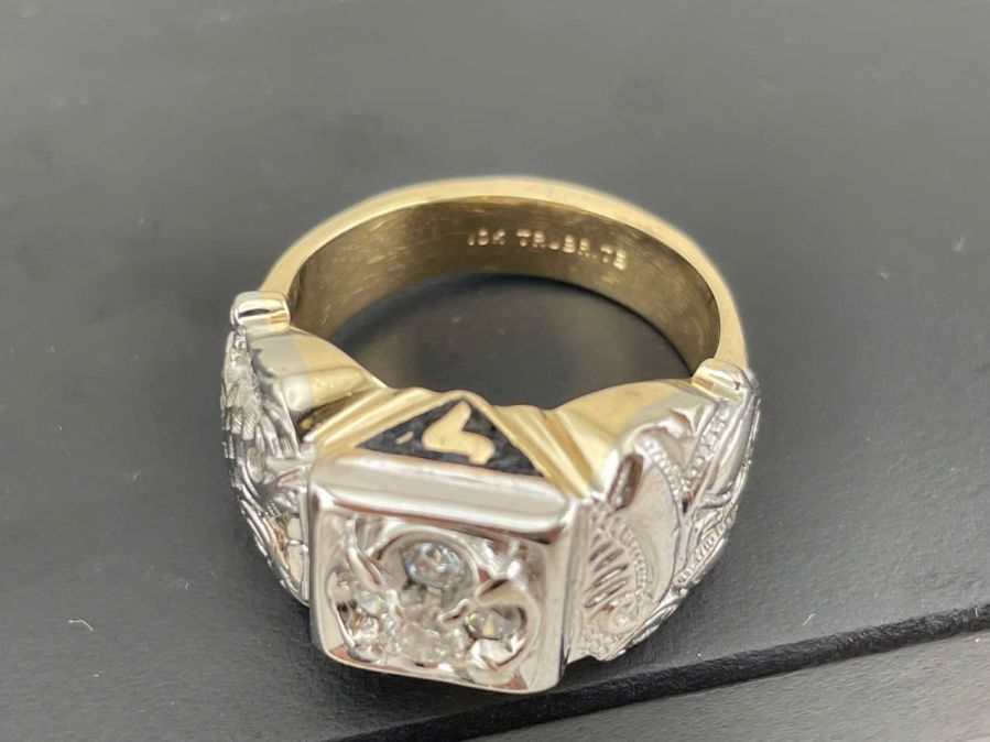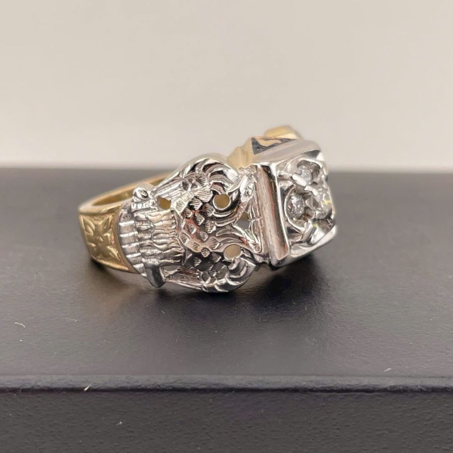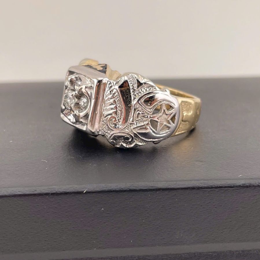 Nhẫn nam Masonic vàng 10k + đính xoàn 3.5ly