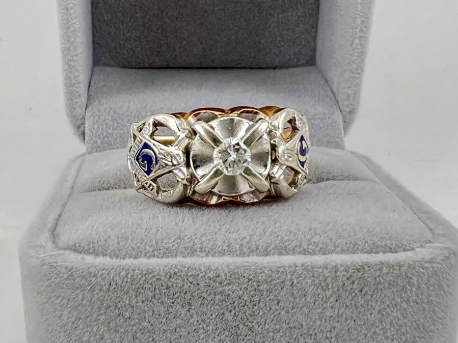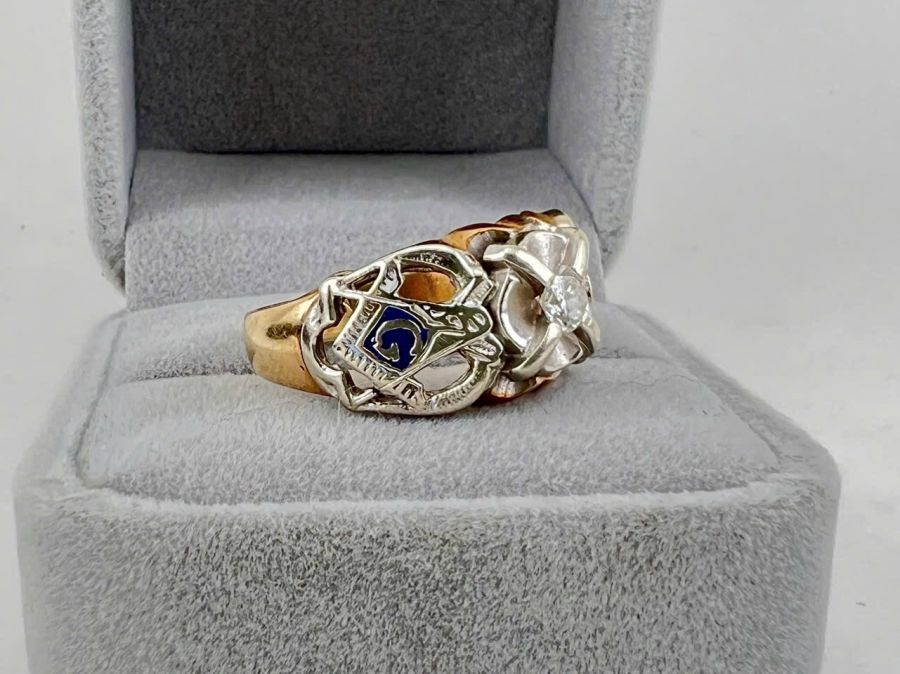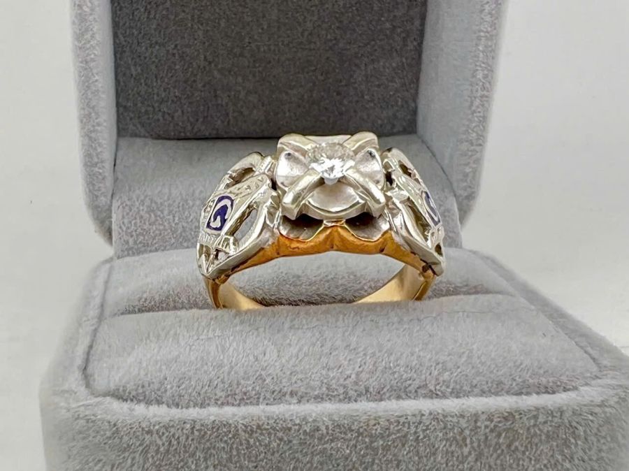 Nhẫn nam Masonic vàng 10k + kim 4.1li