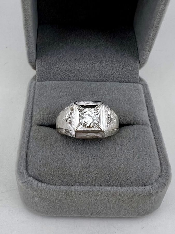 Nhẫn kim cương Vàng trắng 14kViên kim cương thiên nhiên 6ly1Size 18,5mm ( chỉnh size theo yêu cầu)