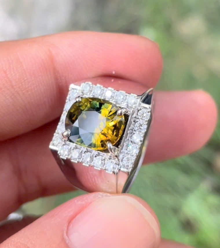 Nhẫn nam 14k đính full kim cương thiên nhiên 2mm , Viên Chủ Sapphire Phúc _Lộc _Thọ VIP , ,size nhẫn 18.5mm