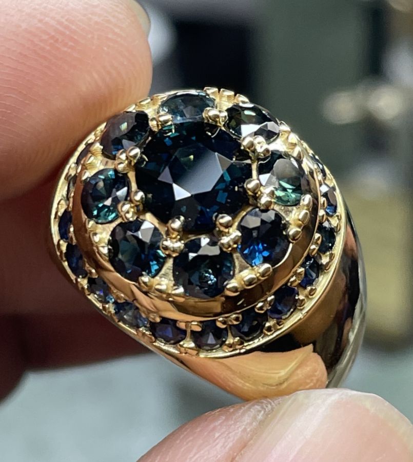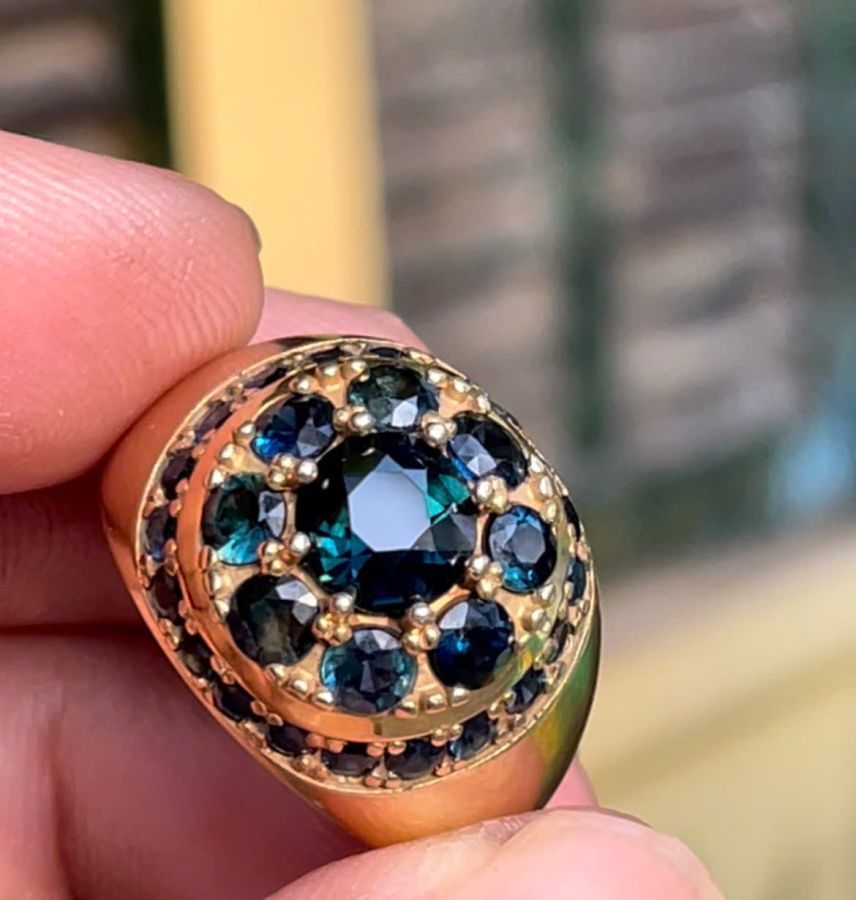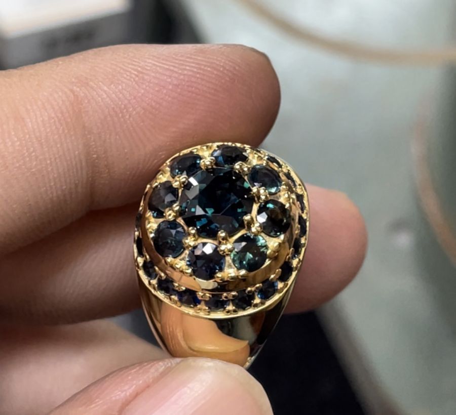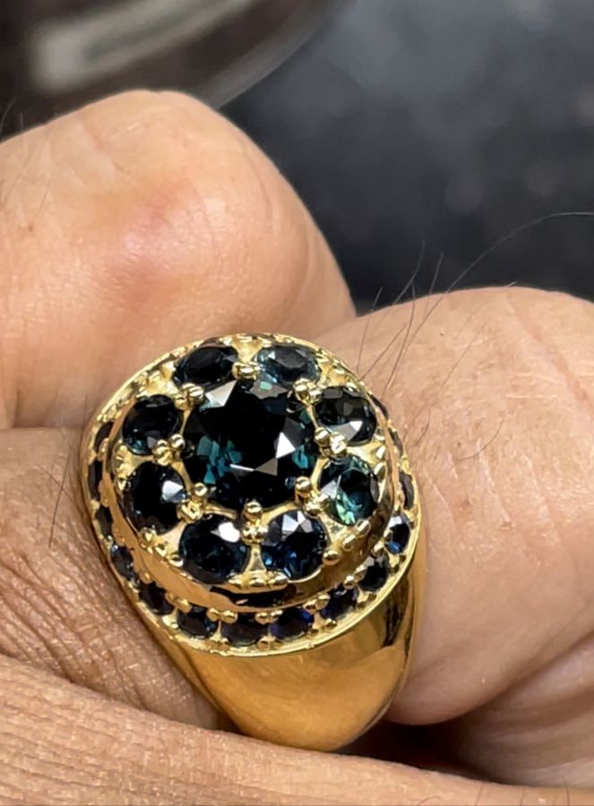 Nhẫn Nam Sapphire , Viên Chủ ~7mm với tone màu Blue Dark tuyệt đẹp ( kiểm định PNJ ) from nhẫn đính sapphire 2.3mm & 8 viên 3.3mm xanh hero