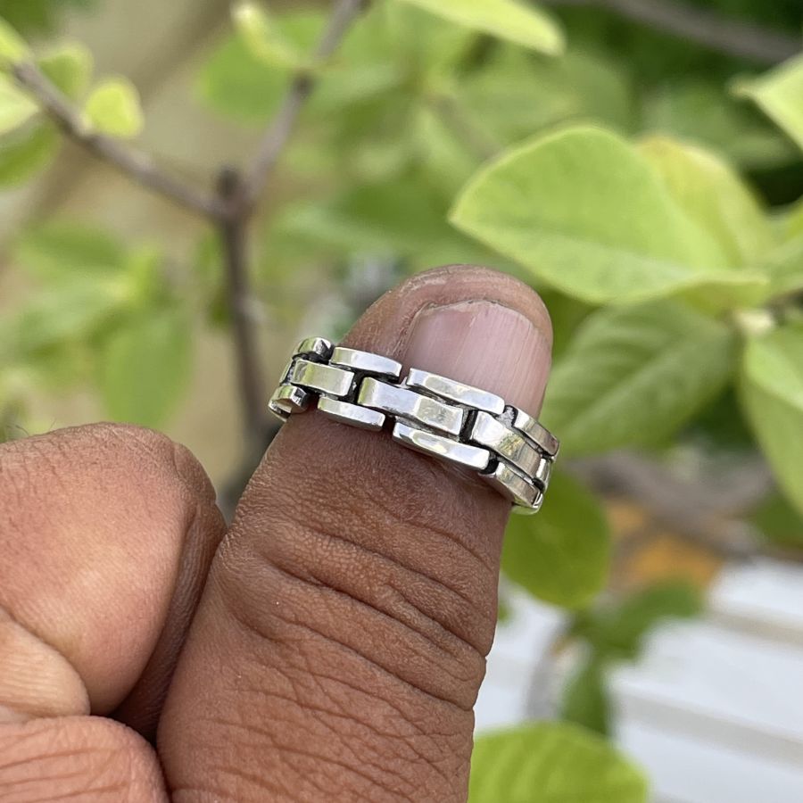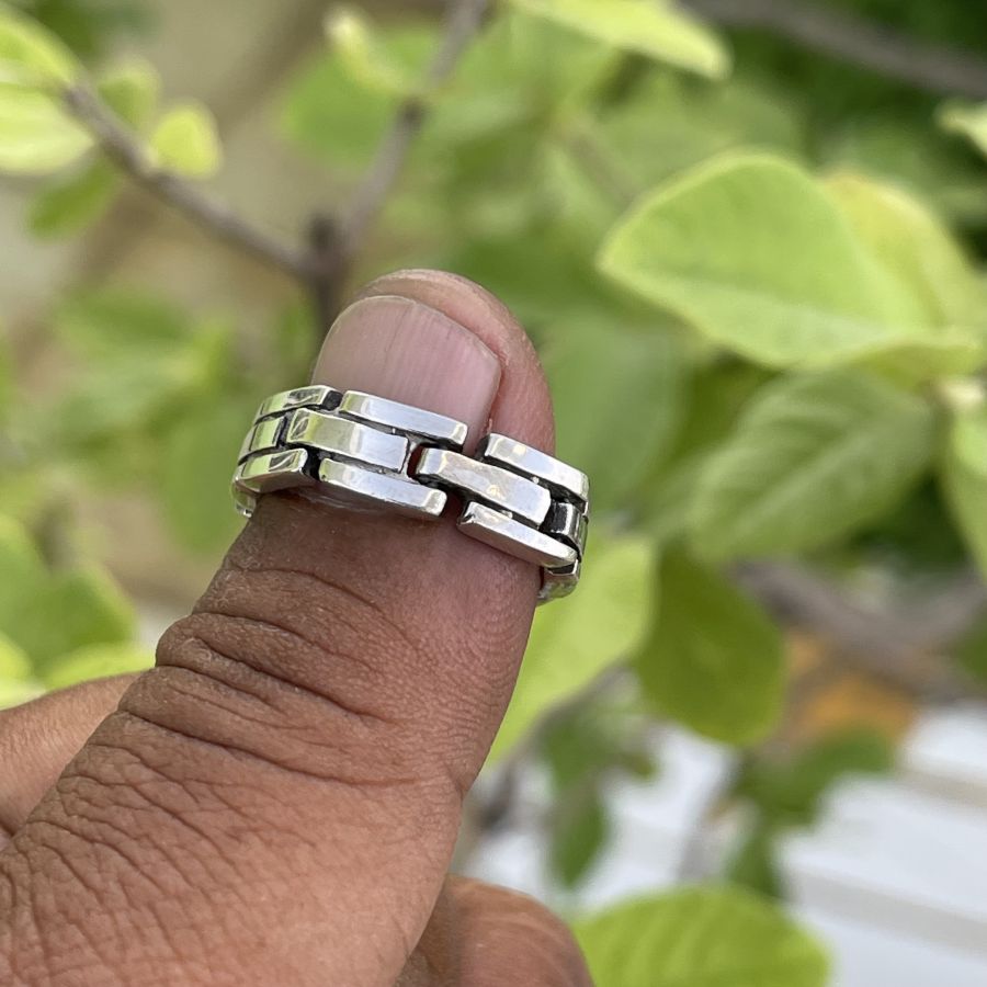 Nhẫn ngoại thiết kế kiểu dây đồng hồ - Chất liệu bạc đúc nguyên khối 925 - size trong lòng 18,2 mm - size bản ngang 6,5mm - tình trạng tuyệt vời - giá 479k ( KMC ). Kính mời