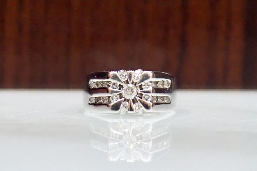 👍Nhẫn ngoại nhập tình trạng tuyệt đẹp , sang trọng , đính full kim cương thiên nhiên rực lửa lấp lánh , lên tay rất đẹp và sang trọng