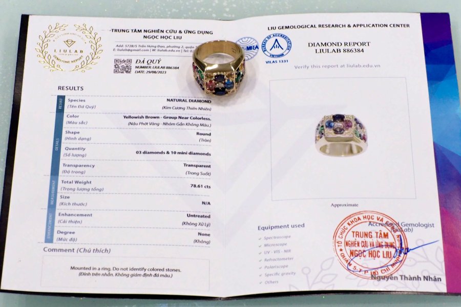 👍Tình trạng nhẫn tuyệt đẹp sang trọng và rất thu hút , đính kim cương thiên nhiên ( màu trắng ) và những viên đá chính hãng nhiều màu sắc được sắp xếp ngẫu nhiên rất đẹp ( có kèm giấy kiễm định ) , lên tay rất đẹp và dễ thương
