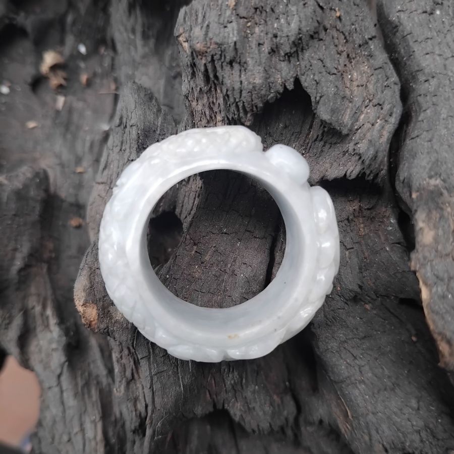 Nhẫn ngọc Myanma chạm khắc rồng thủ công