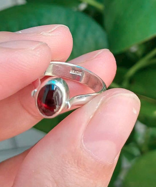 Nhẫn Nữ bạc 925 đính Ngọc hồng lựu (garnet), form cực sang