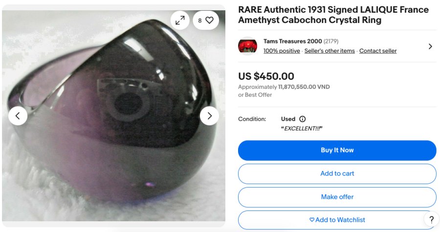 Nhẫn Nữ pha lê hàng hiệu quý tộc PHÁP - LALIQUE sang chảnh