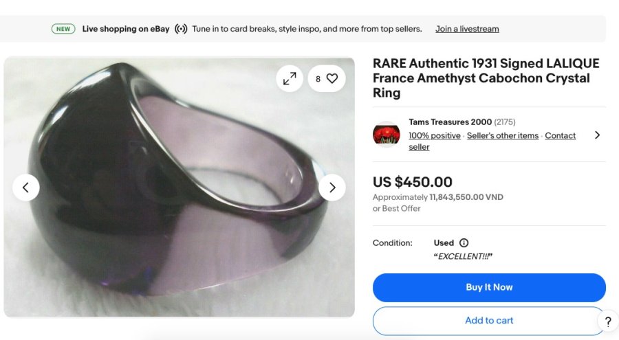 Nhẫn Nữ Pha lê Tím Lalique hàng hiệu Pháp, sang trọng & đẳng cấp