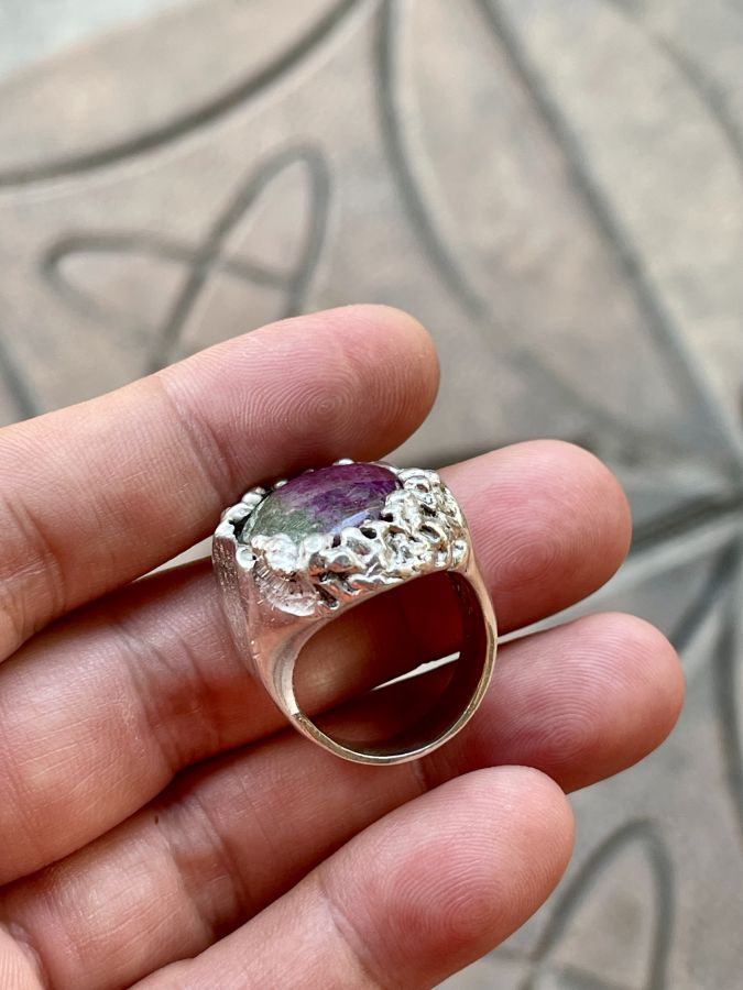 Nhẫn bạc ngoại đính ruby phi thiên nhiên , đúc dầy nặng hơn 6 chỉ Ni 18,5-19mm lh 0938968896 zalo or call