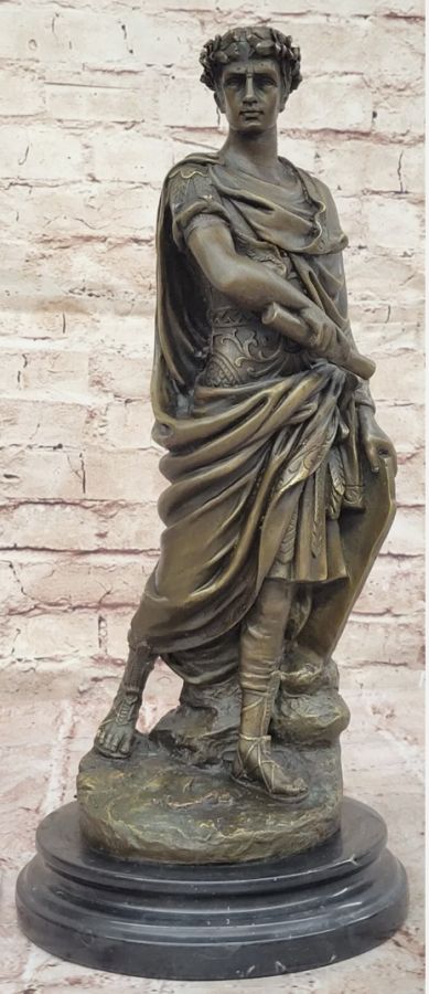 BRONZE JULIUS CAESAR Roman Military Bust Sculpture Art Deco Warrior Figurine