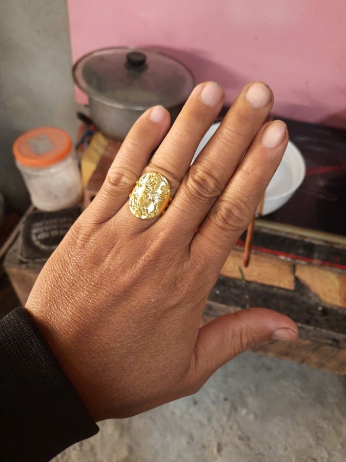 Nhẫn thời trang nam titan mạ si vàng. Khắc loan phượng. Lành đẹp.