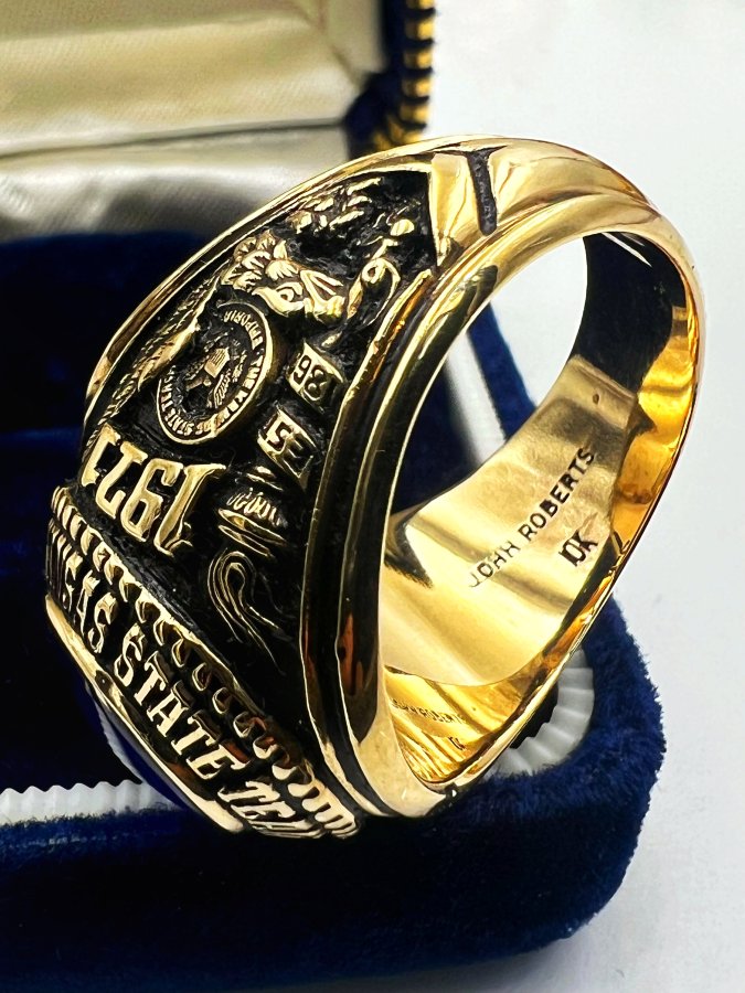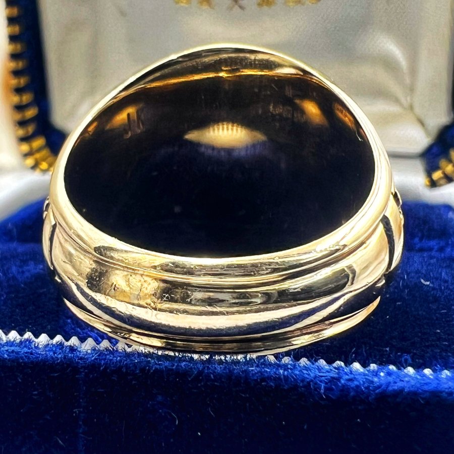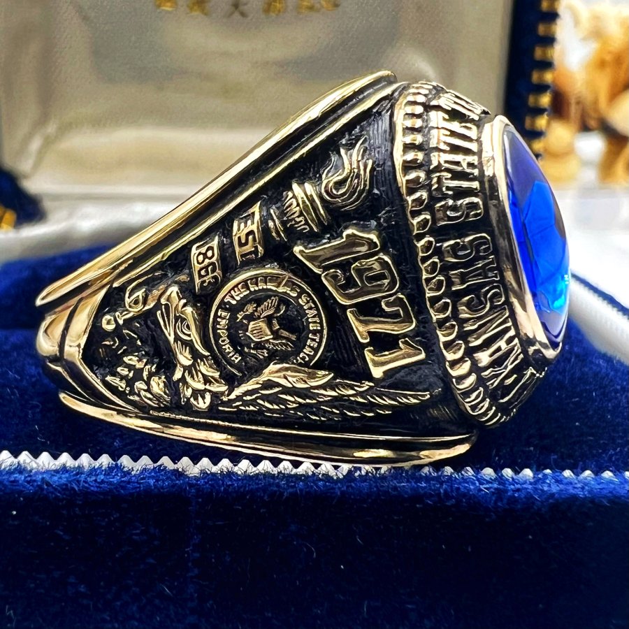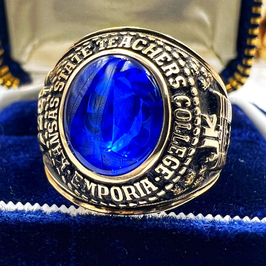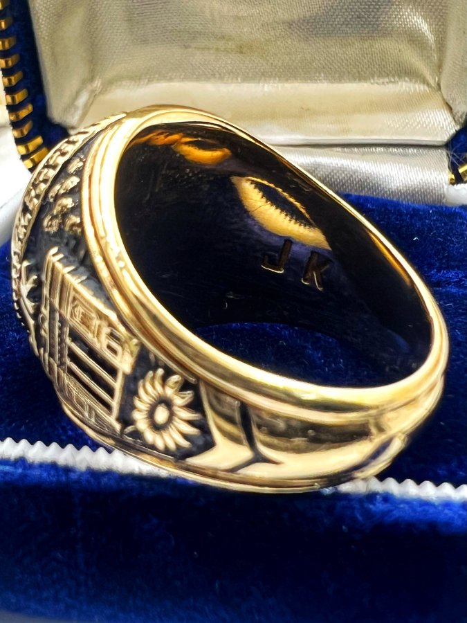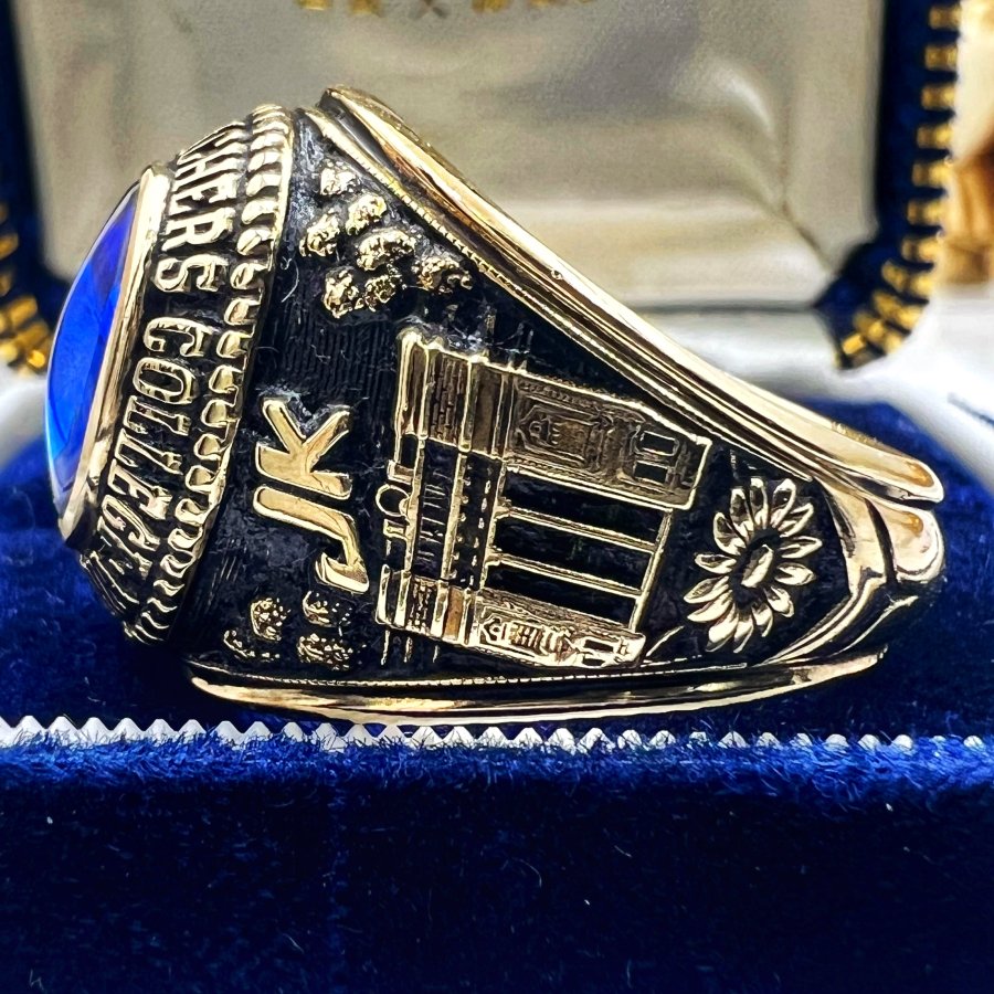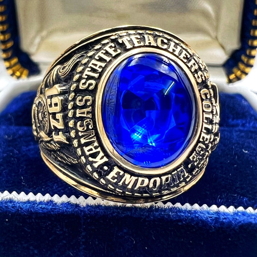 Nhẫn vàng 10k đại học năm 1971 mới tinh phôm bự hoa văn sắc nét đá xanh mo rất đẹp, size 20mm - ngang 21mm, nặng 19.9gram (5.3 chỉ), giao thông 39tr❤️ Thiên 0923.12.6789