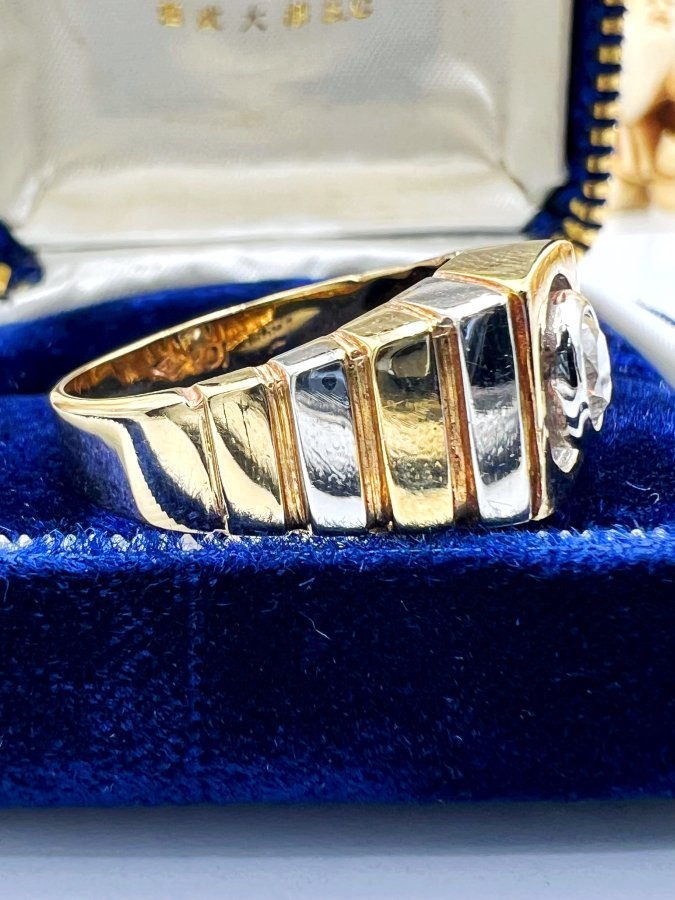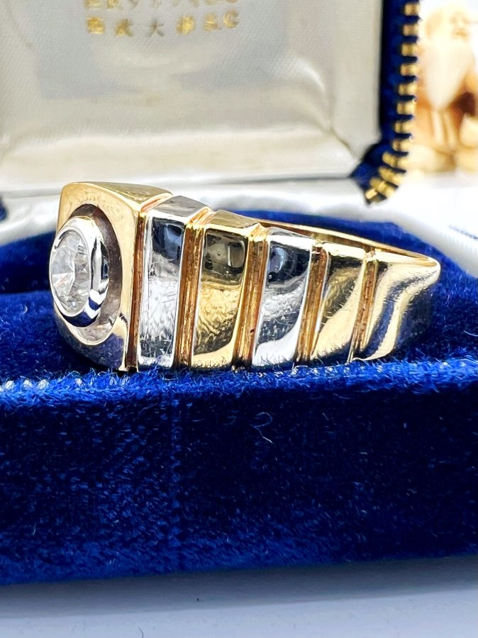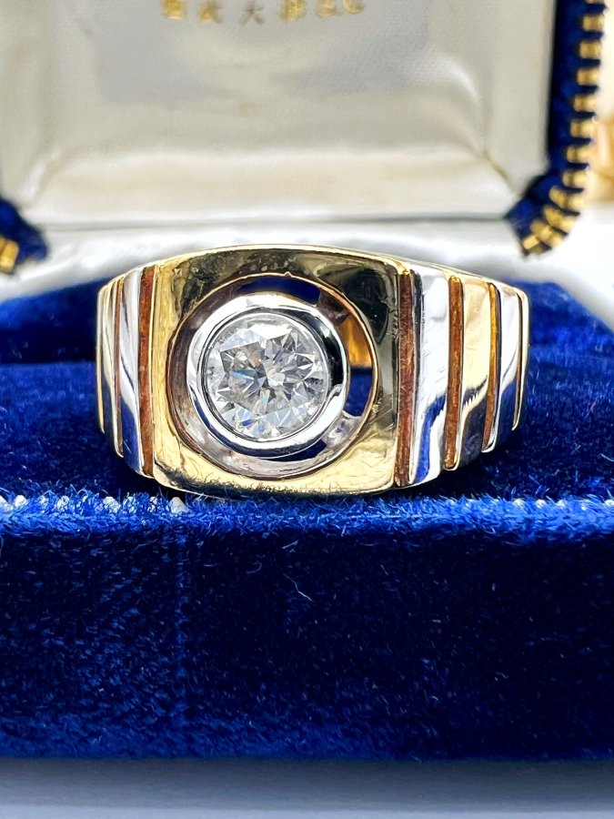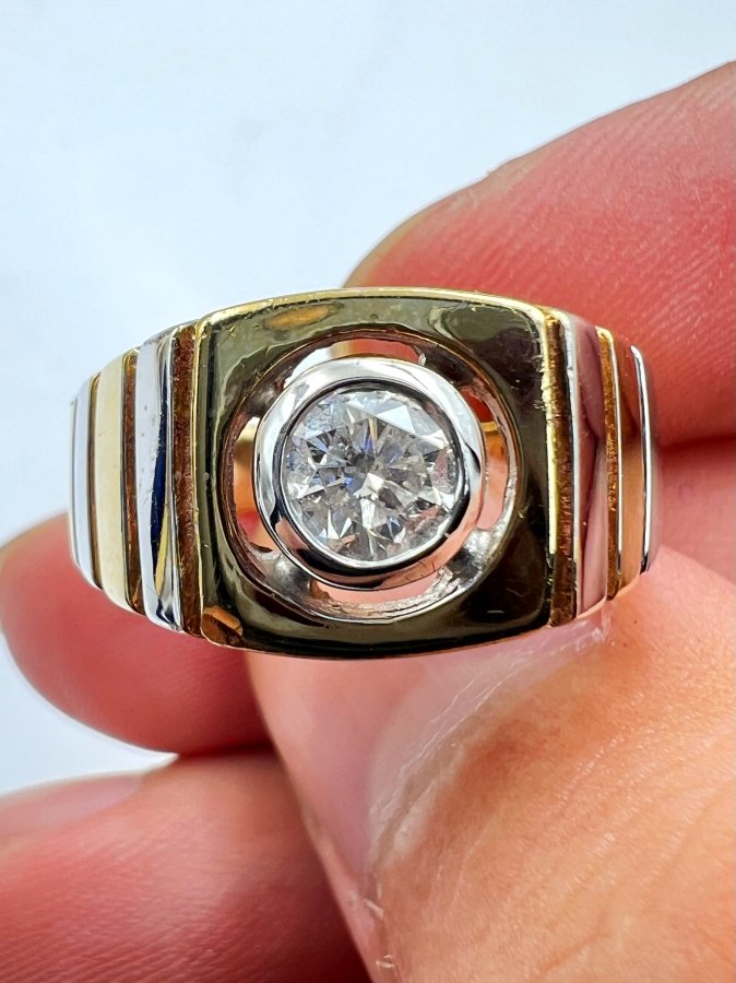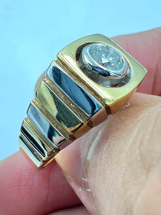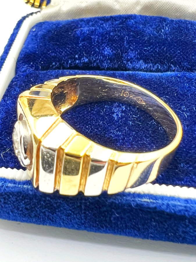 Nhẫn vàng 10k italy đemi 2 màu đính viên soàn thiên nhiên 5.1li trắng tinh lửa mạnh rất đẹp, size 19.5mm - bản ngang 11mm, nặng 7.95gram (2.12 chỉ), giao thông 25tr❤️ Thiên 0923.12.6789