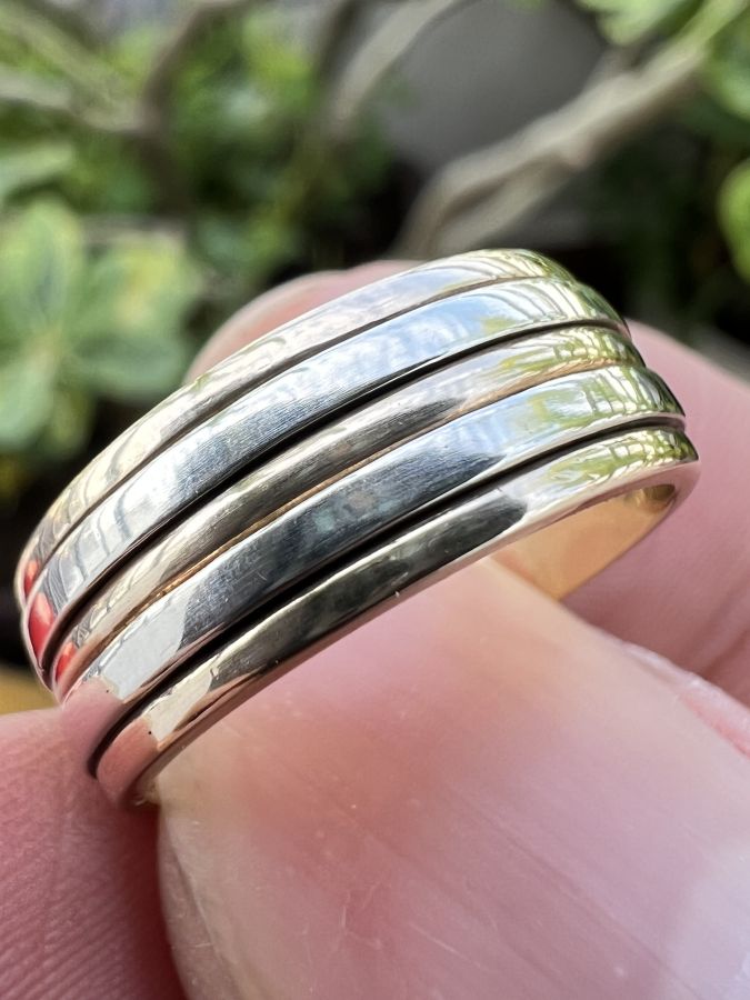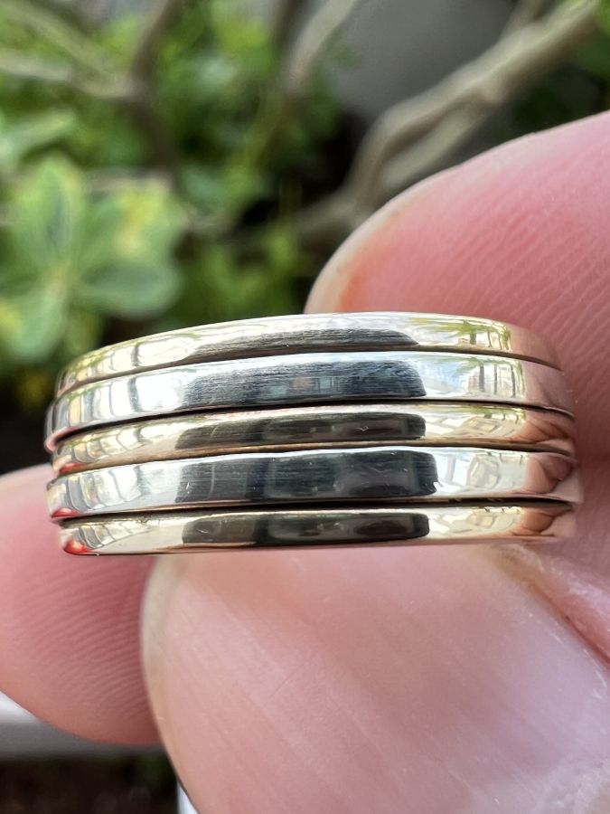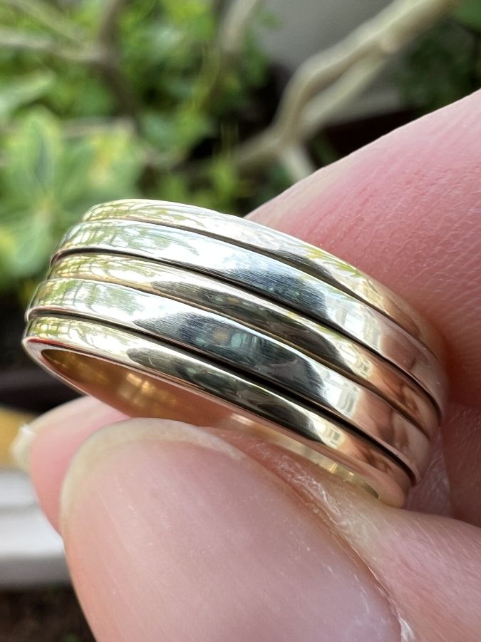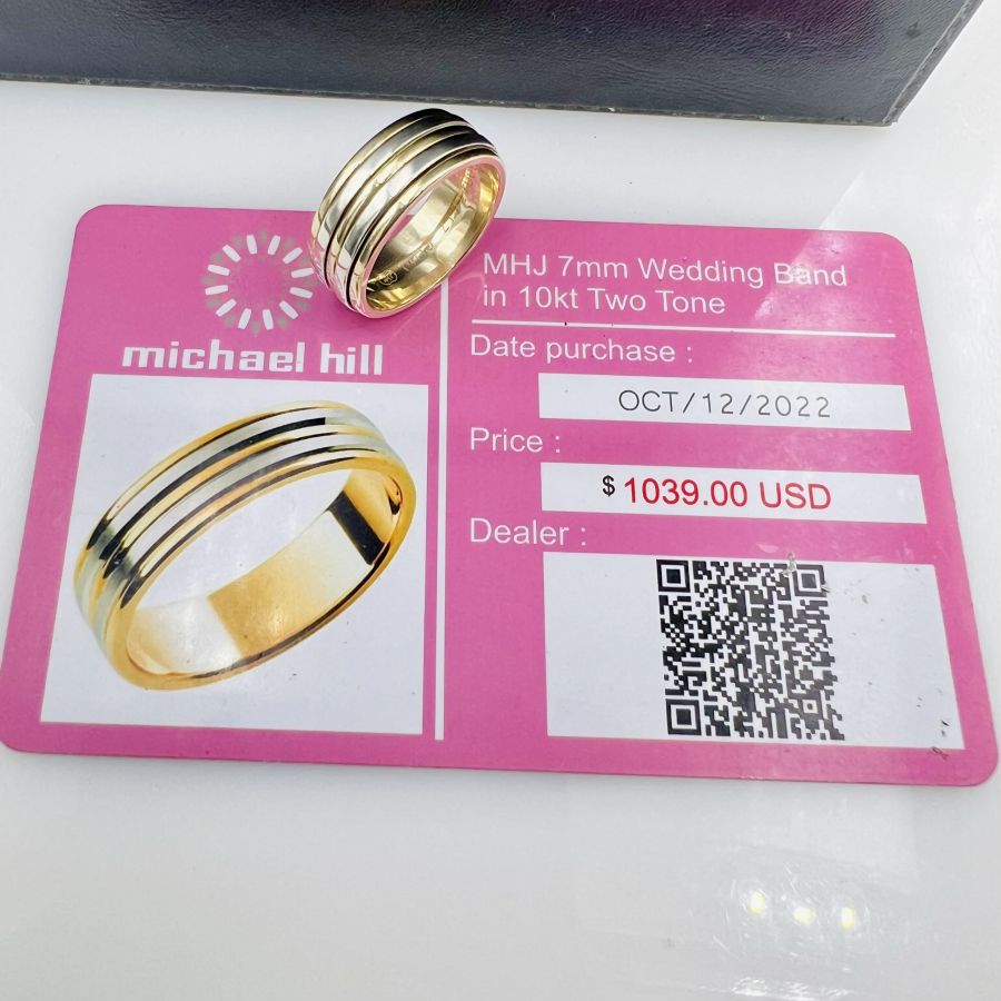 Nhẫn vàng 10k phôm tròn đemi 2 màu hiệu Michael Hill rất đẹp, còn thẻ, size 17mm - ngang 7mm, nặng 5.89gram (1.57 chỉ), giao thông 9tr5☕ Thiên 0923.12.6789