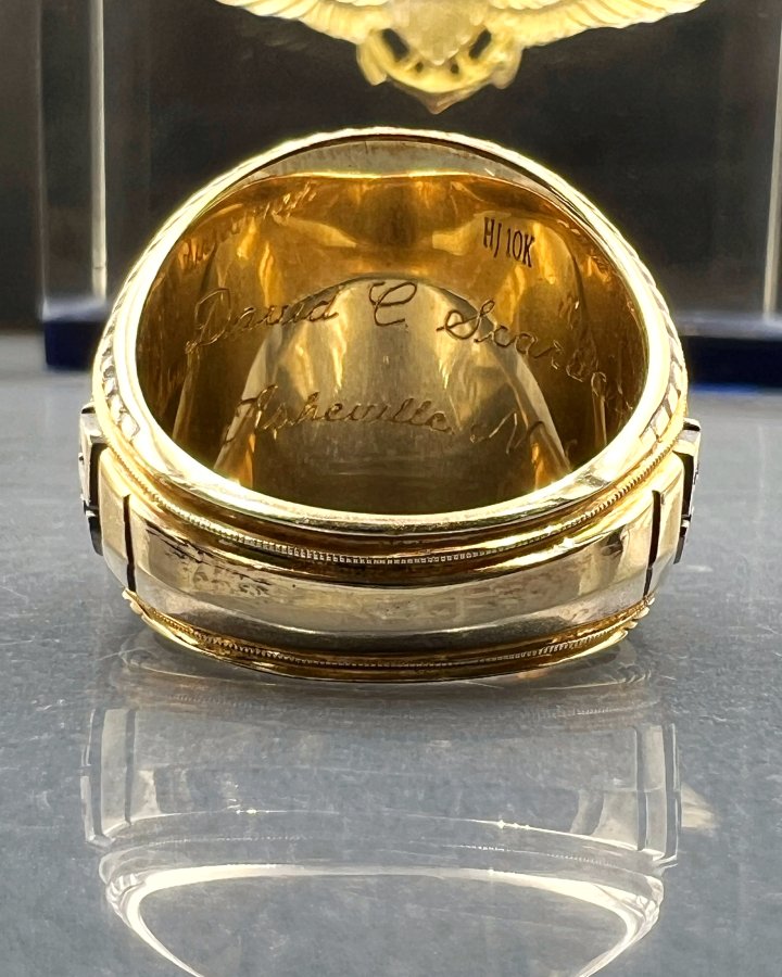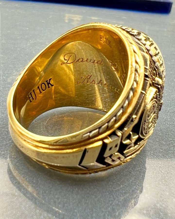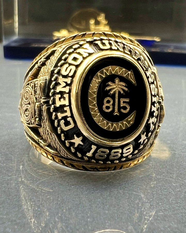 Nhẫn vàng 10k trường ********** Clemson năm 1985 mới cứng phôm bự hoa văn sắc nét đá đen khảm logo vàng rất đẹp, còn đủ hộp và giấy khai sinh đáng sưu tầm, size 19mm - bản ngang 21mm, nặng 23.98gram (6.39 chỉ), giao thông 63tr❤️ Thiên 0923.12.6789