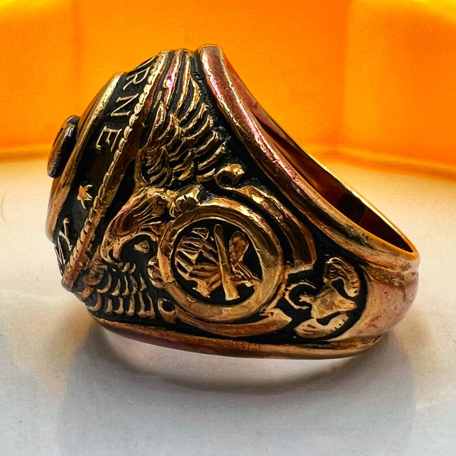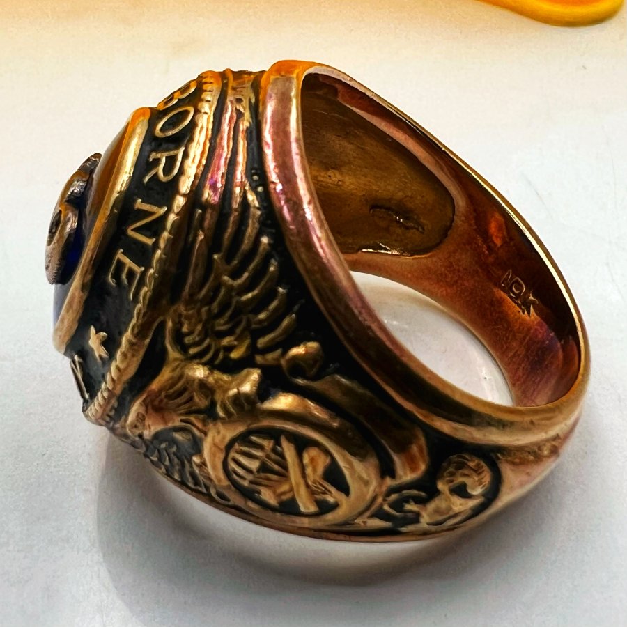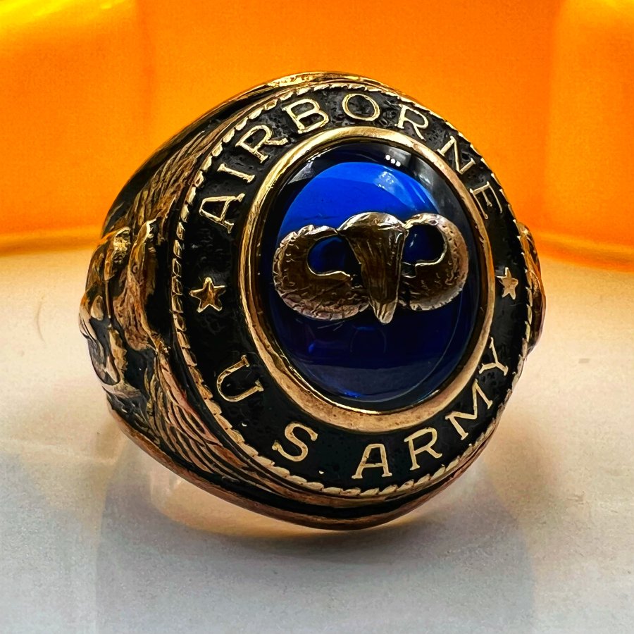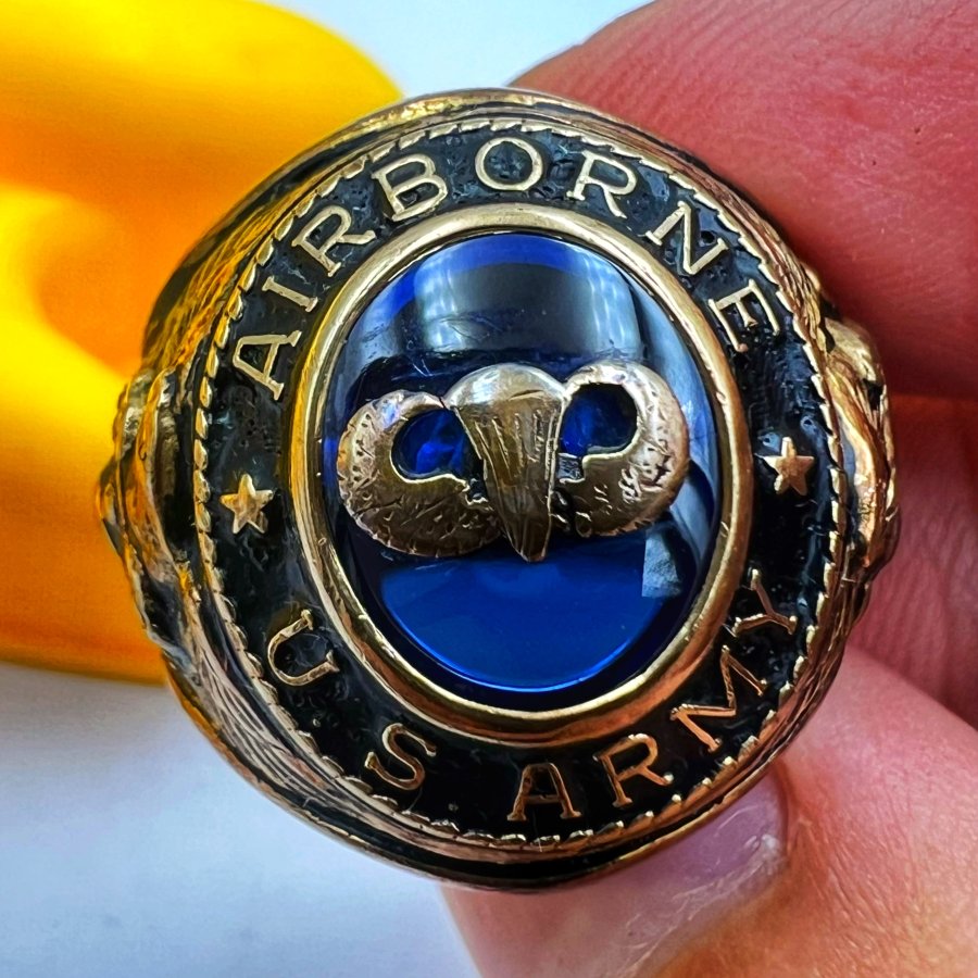 Nhẫn vàng 10k U.S Army - Airborne phôm xưa đá xanh mo khảm logo rất đẹp, size 18.5mm - ngang 22mm, nặng 12.9gram (3.44chỉ), giao thông 32tr❤️ Thiên 0923.12.6789