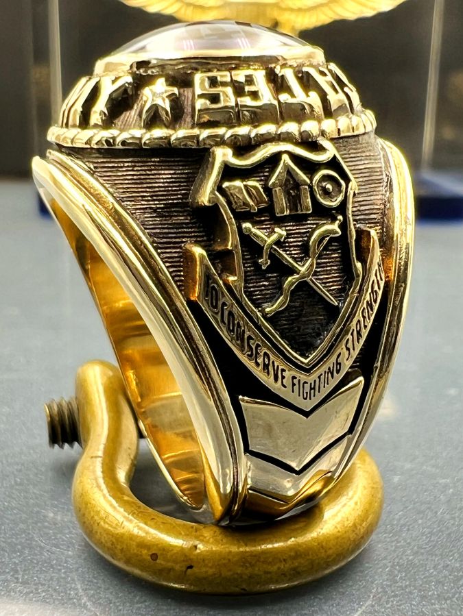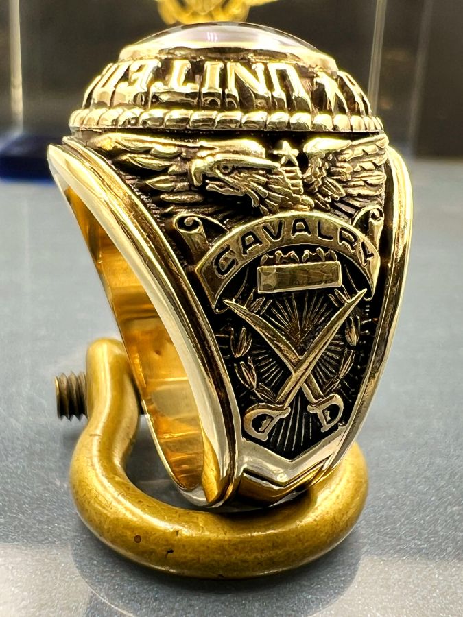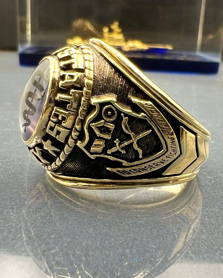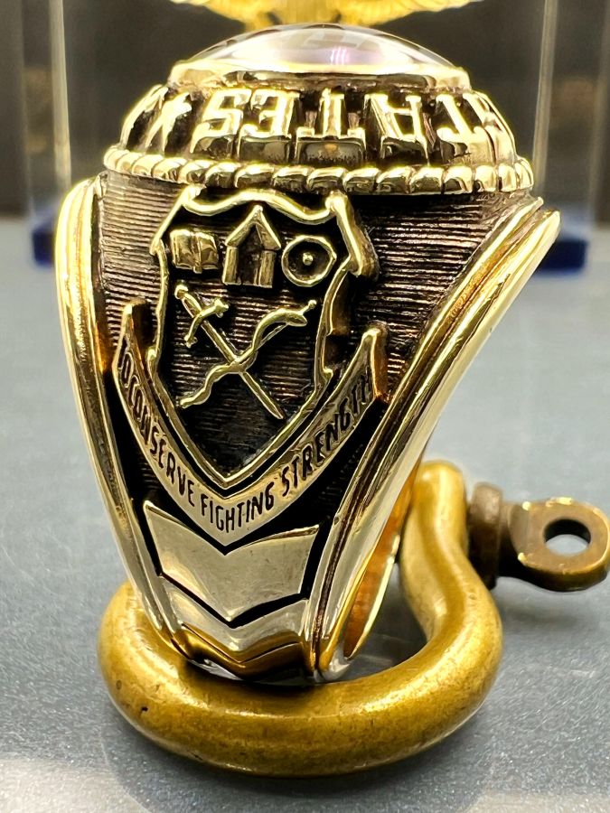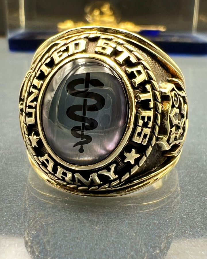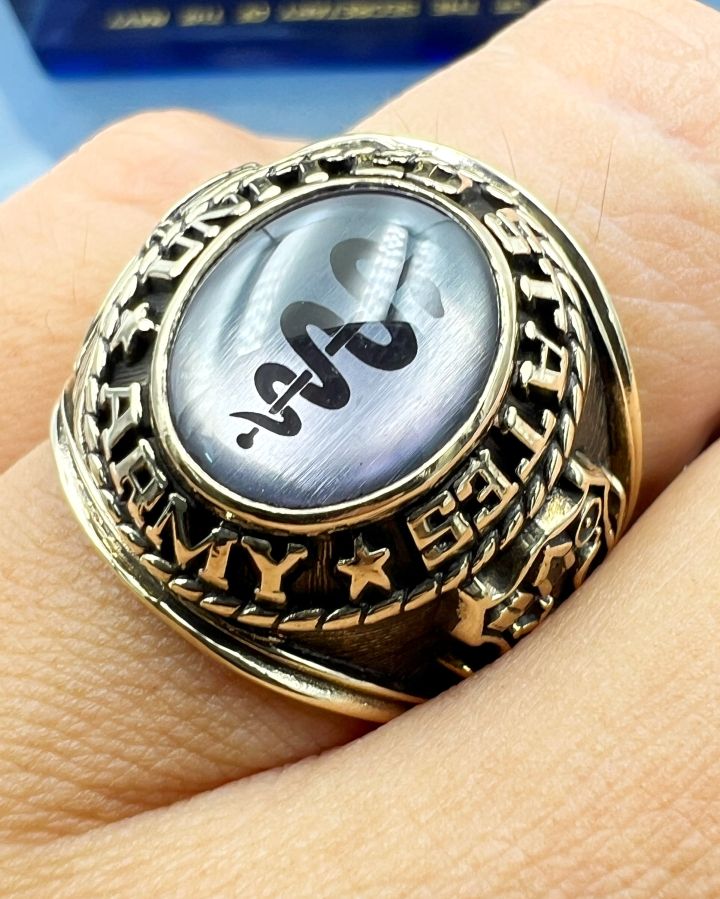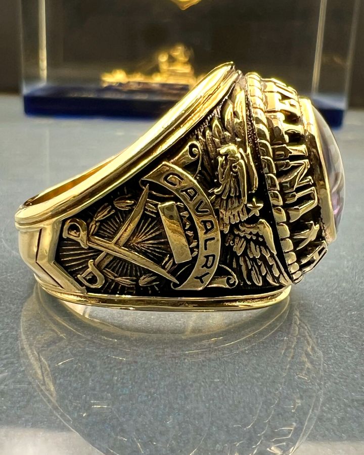 Nhẫn vàng 10k U.S Army hoa văn sắc nét đá tím mo có logo rất đẹp, size 19.5mm - ngang 21mm, nặng 18.3gram (4.88 chỉ), giao thông 32tr☕ Thiên 0923.12.6789
