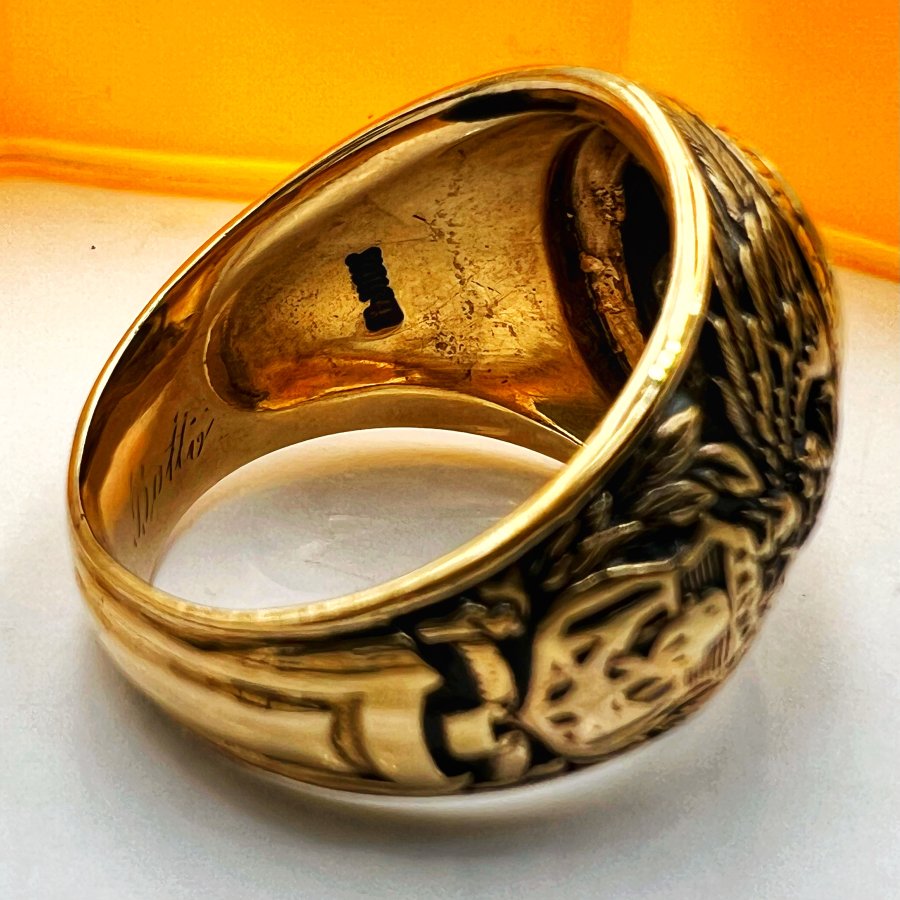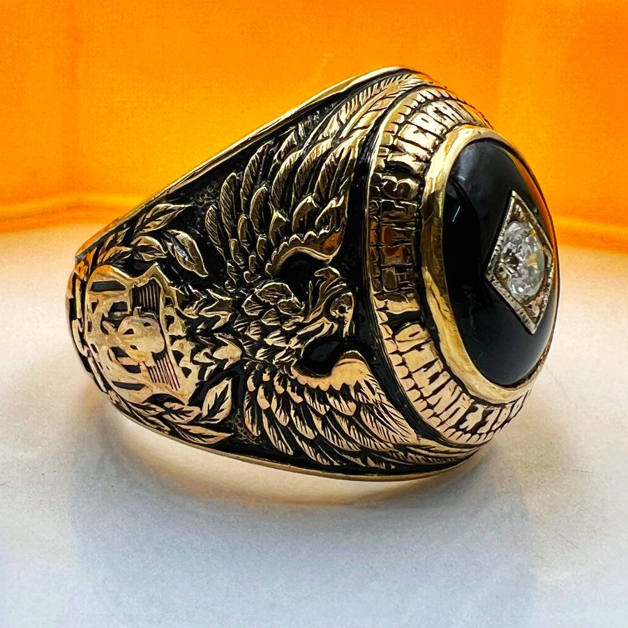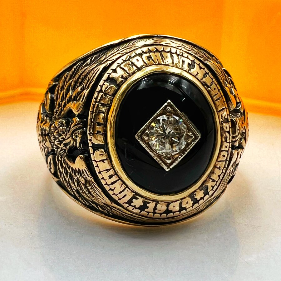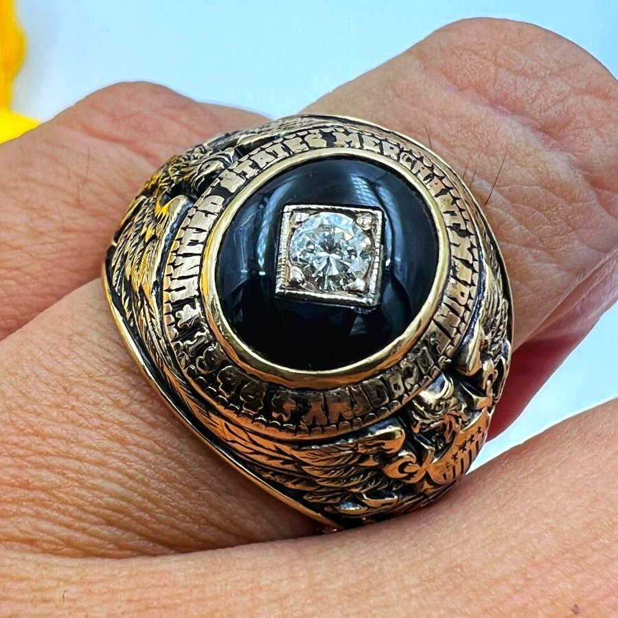 Nhẫn vàng 10k U.S Merchant Marine Academy (King Point) năm 1944 phôm xưa đá đen đính soàn thiên nhiên 4.5li trắng sạch lửa mạnh rất đẹp, size 20mm - bản ngang 20mm, nặng 14.92gram (3.98 chỉ), giao thông 4xtr❤️ Thiên 0923.12.6789