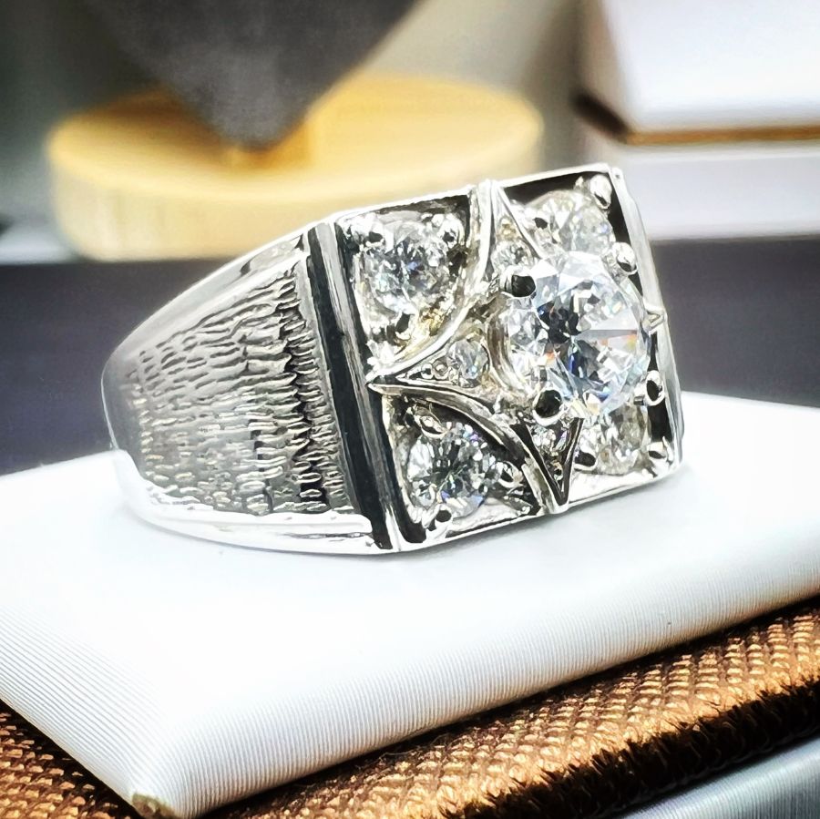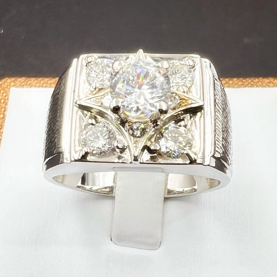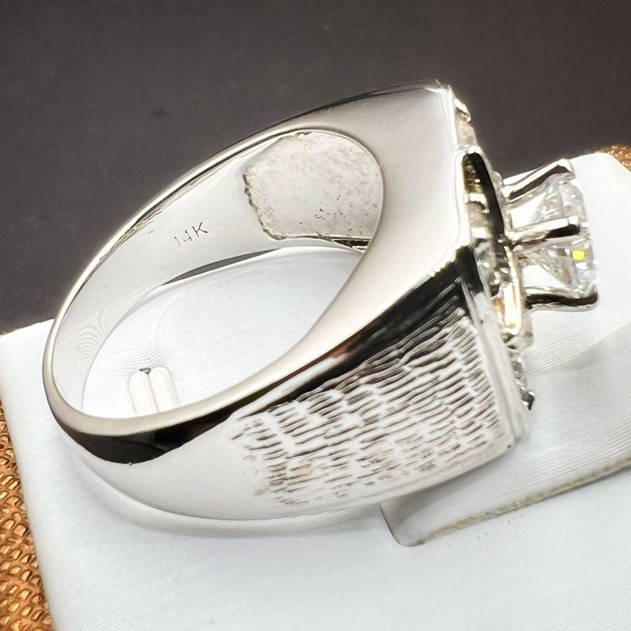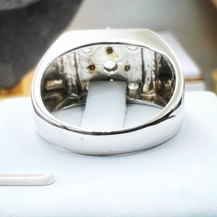 Nhẫn vàng 14k italy đính soàn thiên nhiên (4v 3.6li và 4v 1.6li) rất đẹp và sang trọng, viên chủ soàn moisanite 6li3, phôm bự, size 20mm - bản ngang 13mm, nặng 12.3gram (3.28 chỉ), giao thông 2xtr