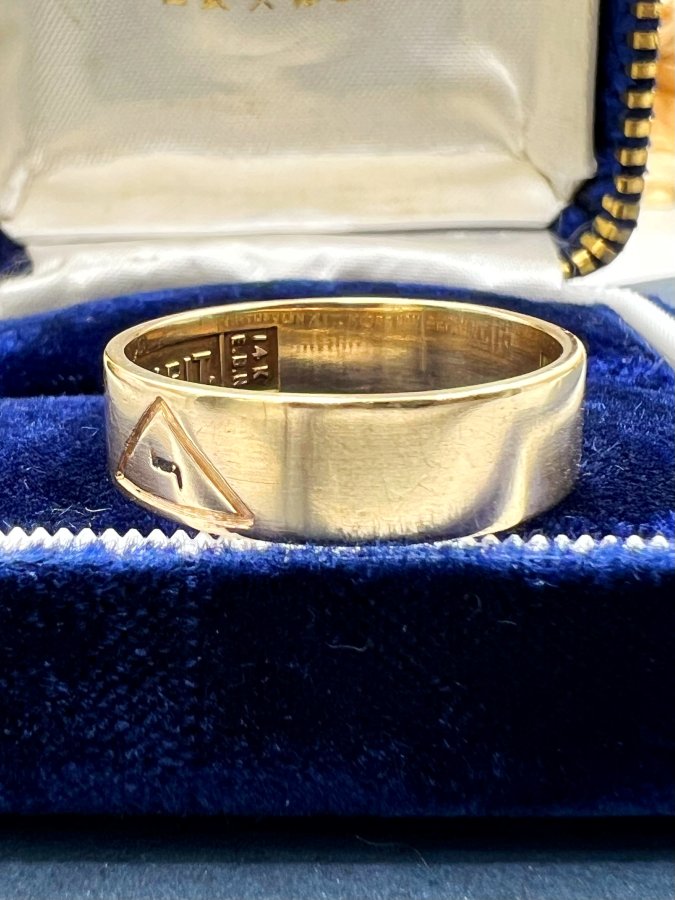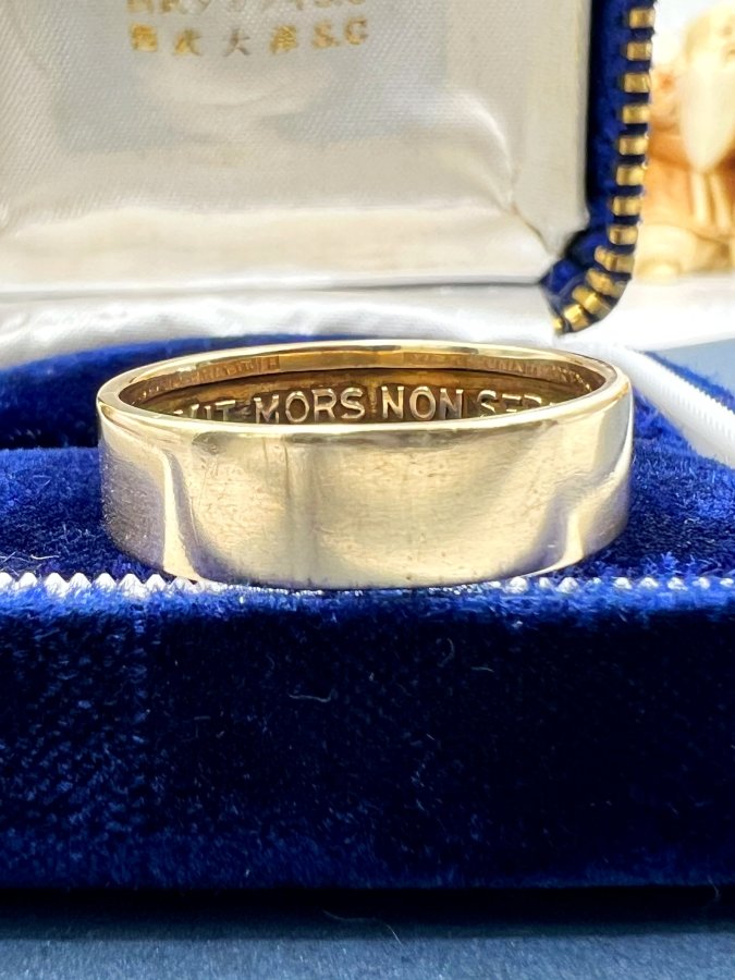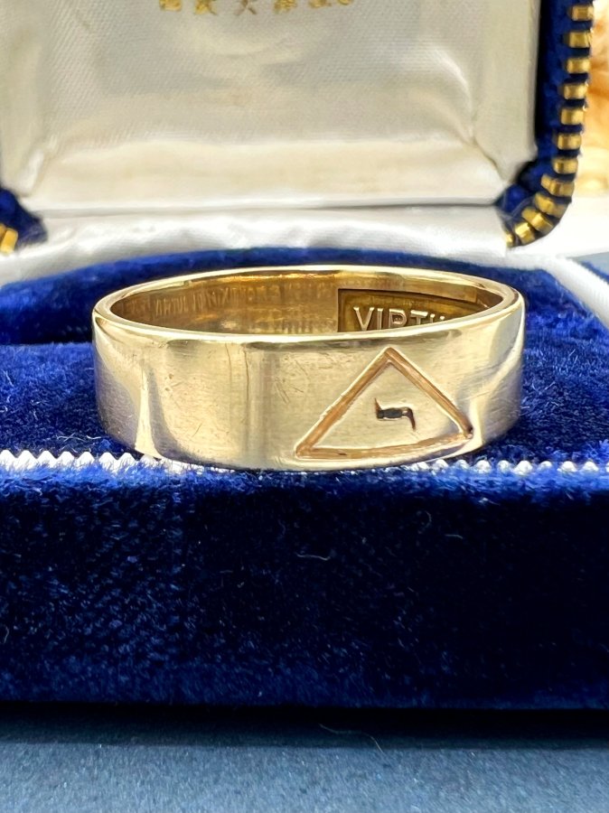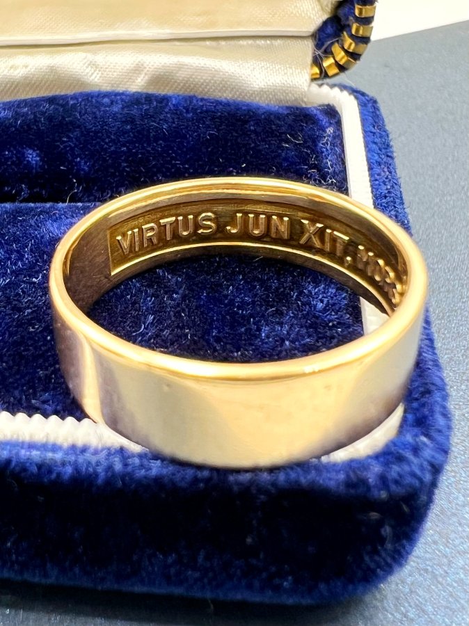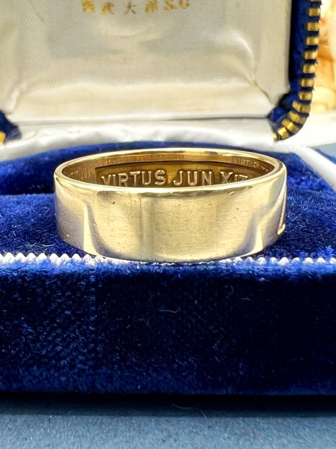Nhẫn vàng 14k Masonic 1 logo phôm tròn lòng nhẫn khắc ”virtus junxit mors non separabit” h