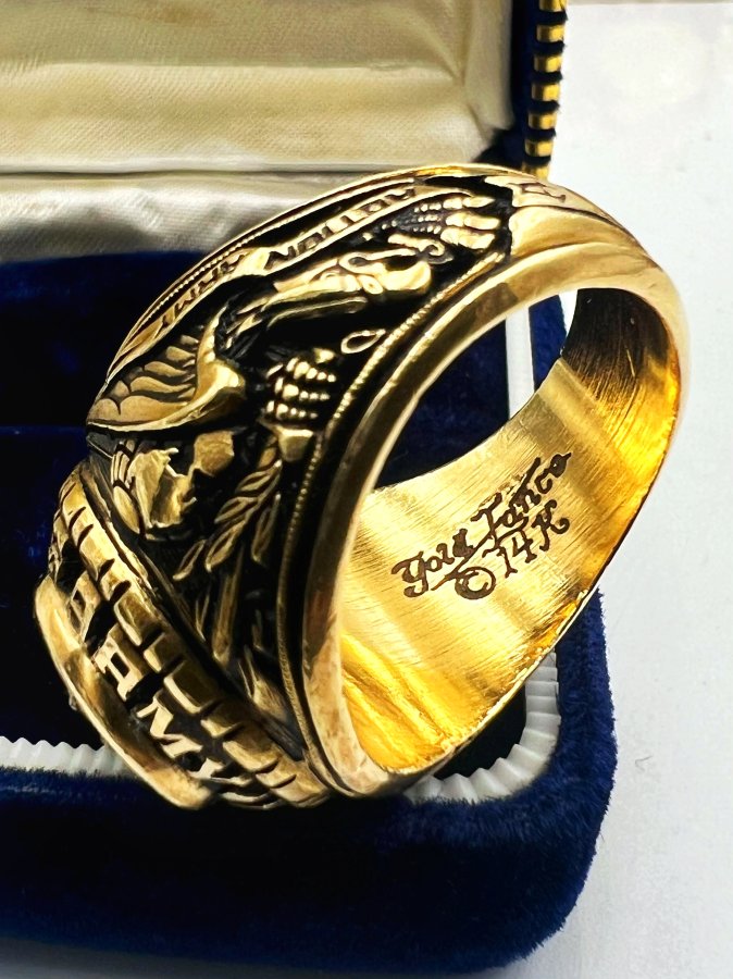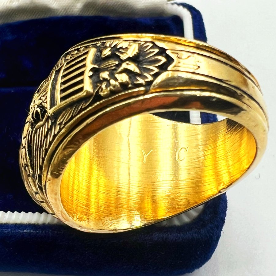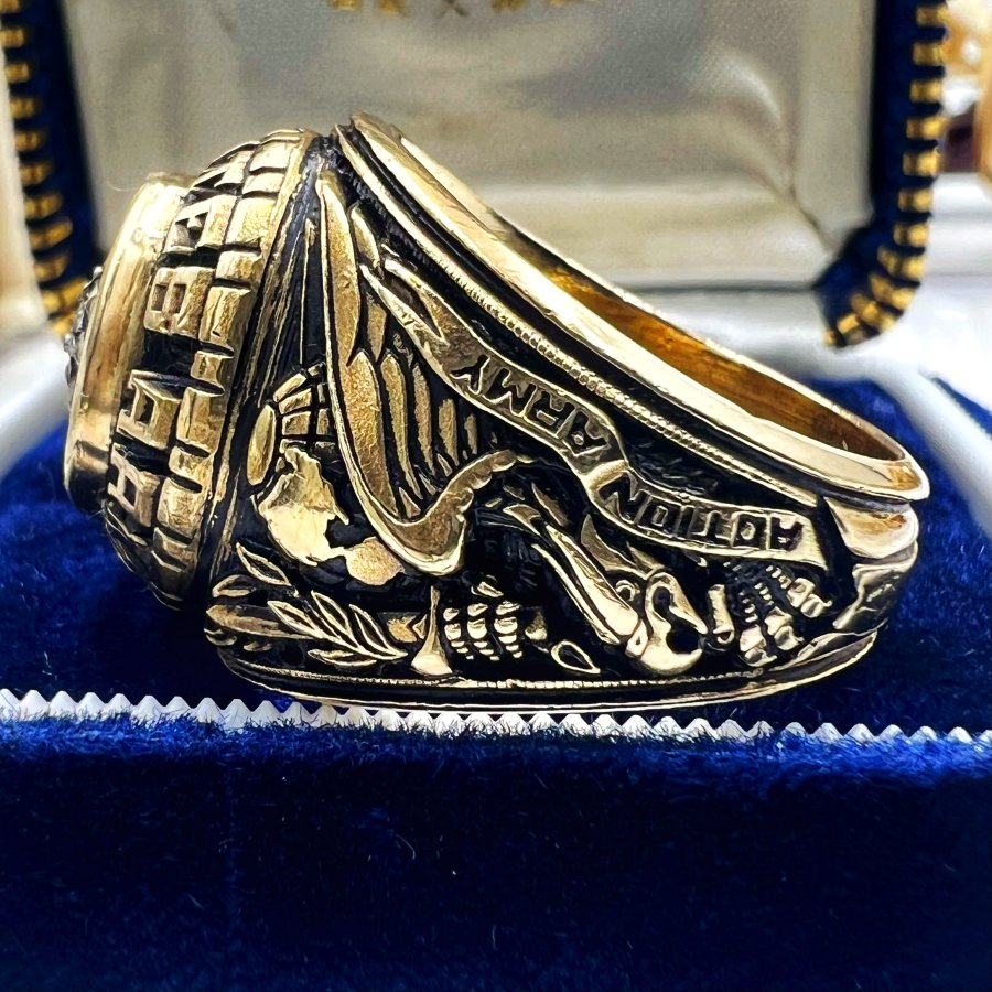 Nhẫn vàng 14k U.S Army mới cứng phôm bự hoa văn sắc nét ổ bông lúa đính soàn 3.2li rất đẹp, size 20mm - ngang 21mm, nặng 25.9gram (6.91 chỉ), giao thông 72tr❤️ Thiên 0923.12.6789