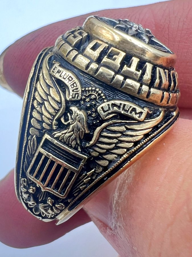Nhẫn vàng 14k U.S Army mới cứng phôm bự hoa văn sắc nét ổ bông lúa đính soàn 3.2li rất đẹp, size 20mm - ngang 21mm, nặng 25.9gram (6.91 chỉ), giao thông 72tr❤️ Thiên 0923.12.6789