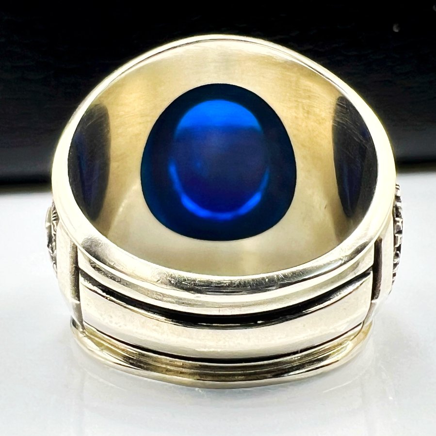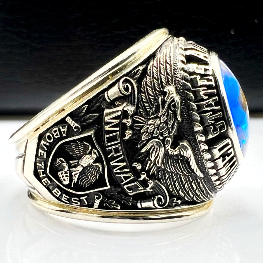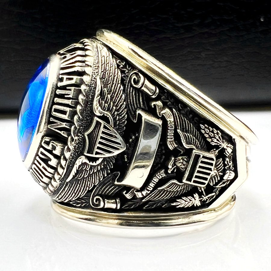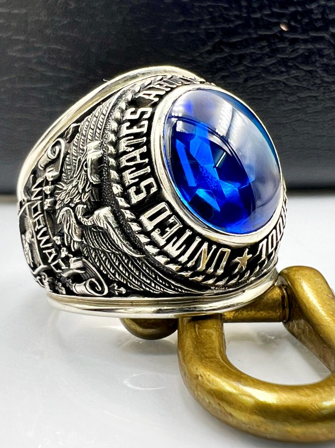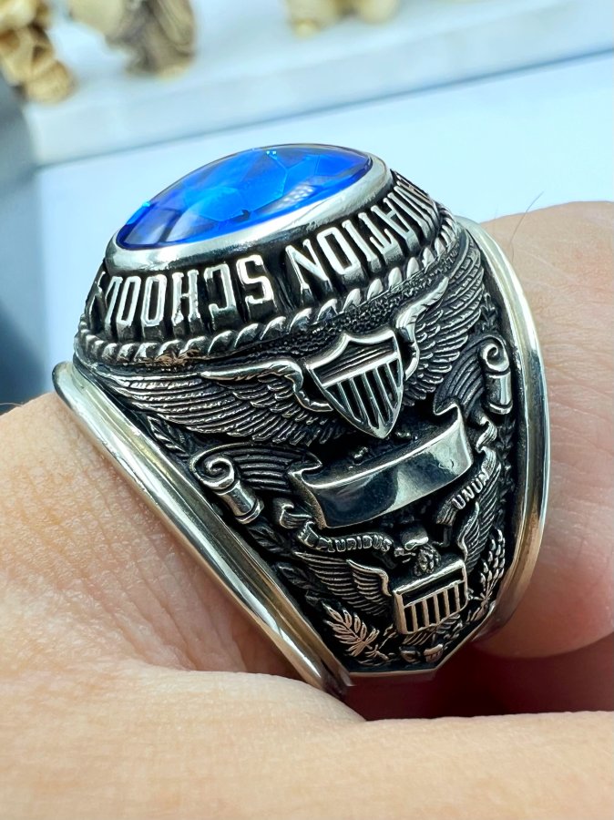 Nhẫn vàng trắng 10k U.S Army Aviation School phôm xưa hoa văn sắc nét đá xanh mo rất đẹp, lòng nhẫn còn keo lót zin, size 19.5mm - ngang 22mm, nặng 20.2gram (5.39 chỉ), giao thông 45tr❤️ Thiên 0923.12.6789